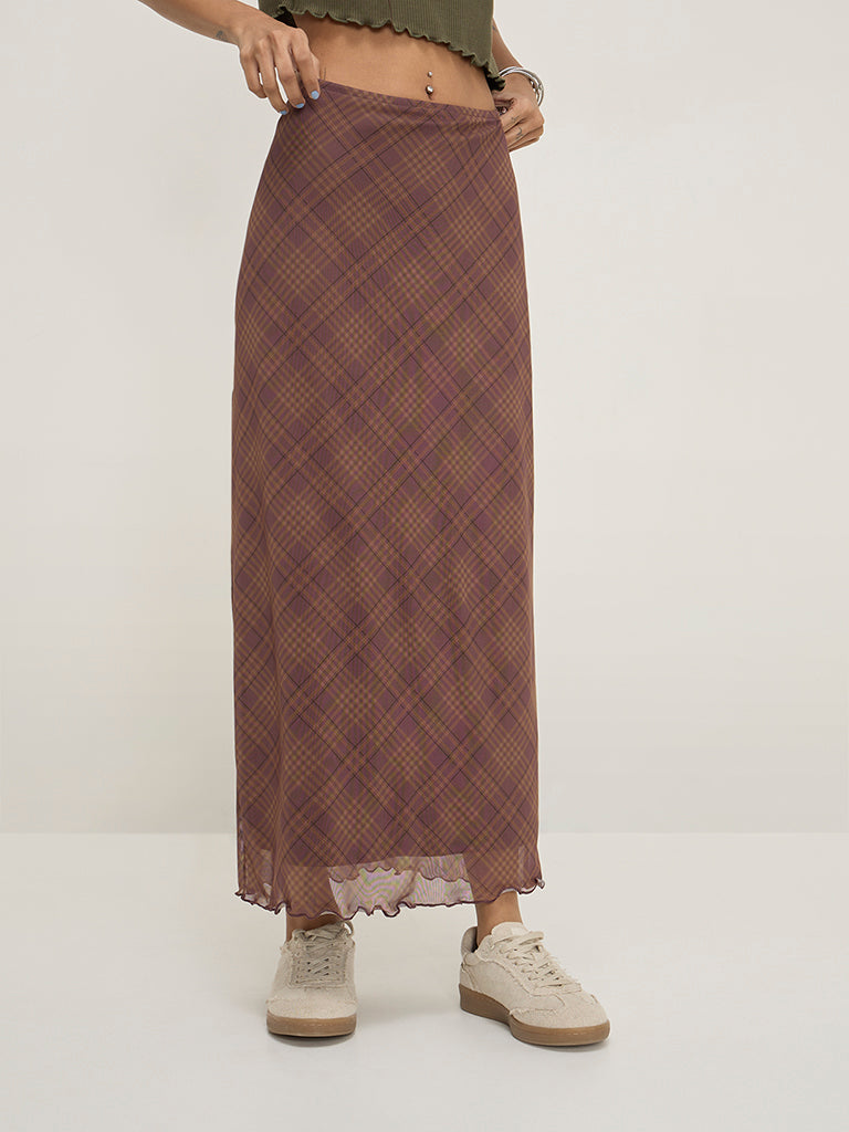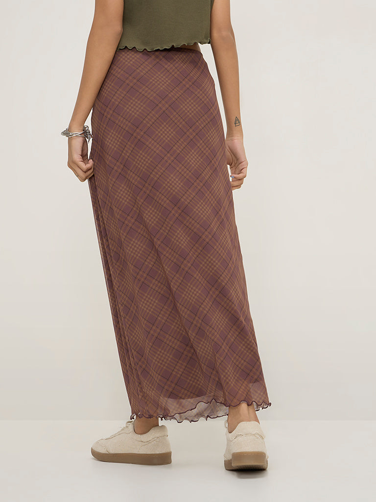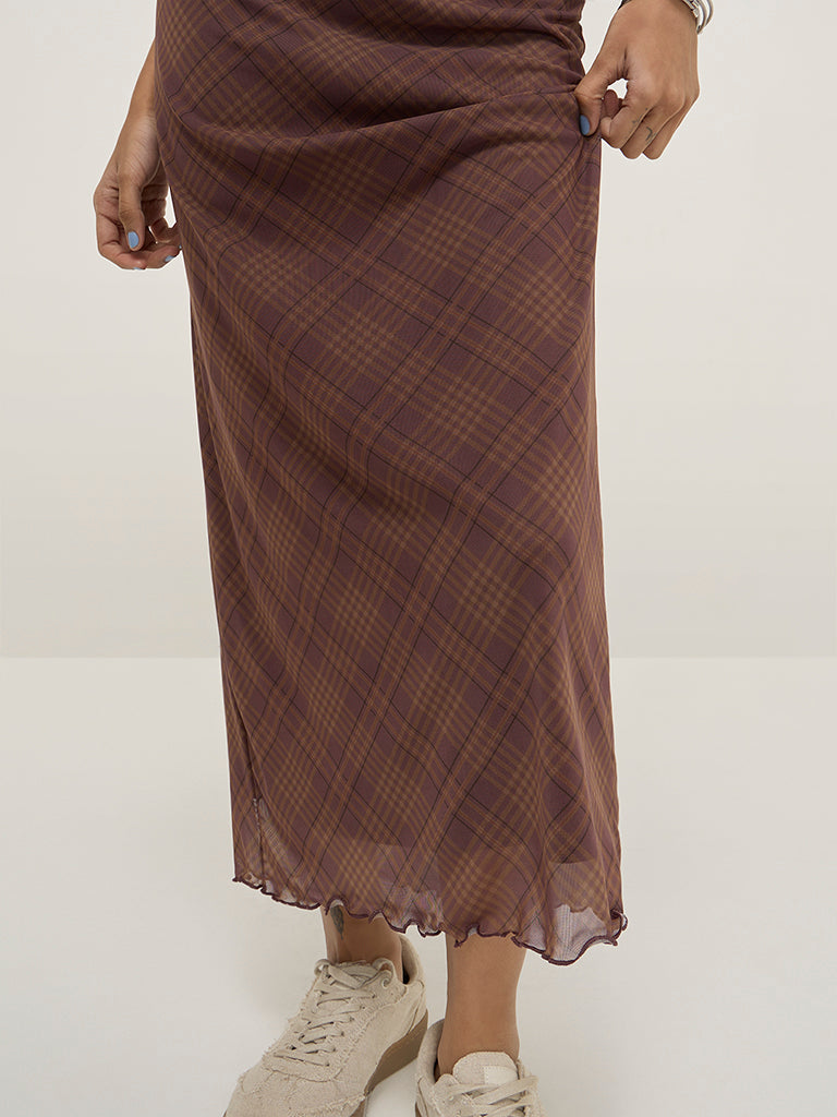 Nuon Brown Checkered High-Rise Skirt
