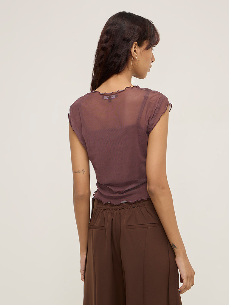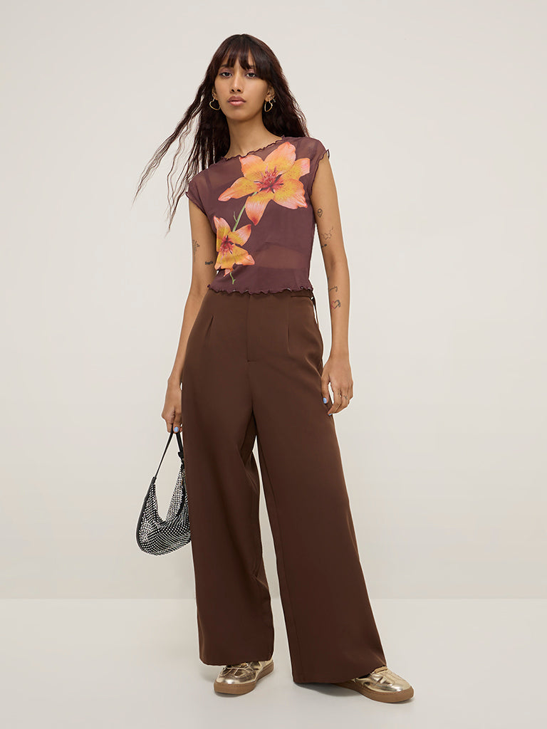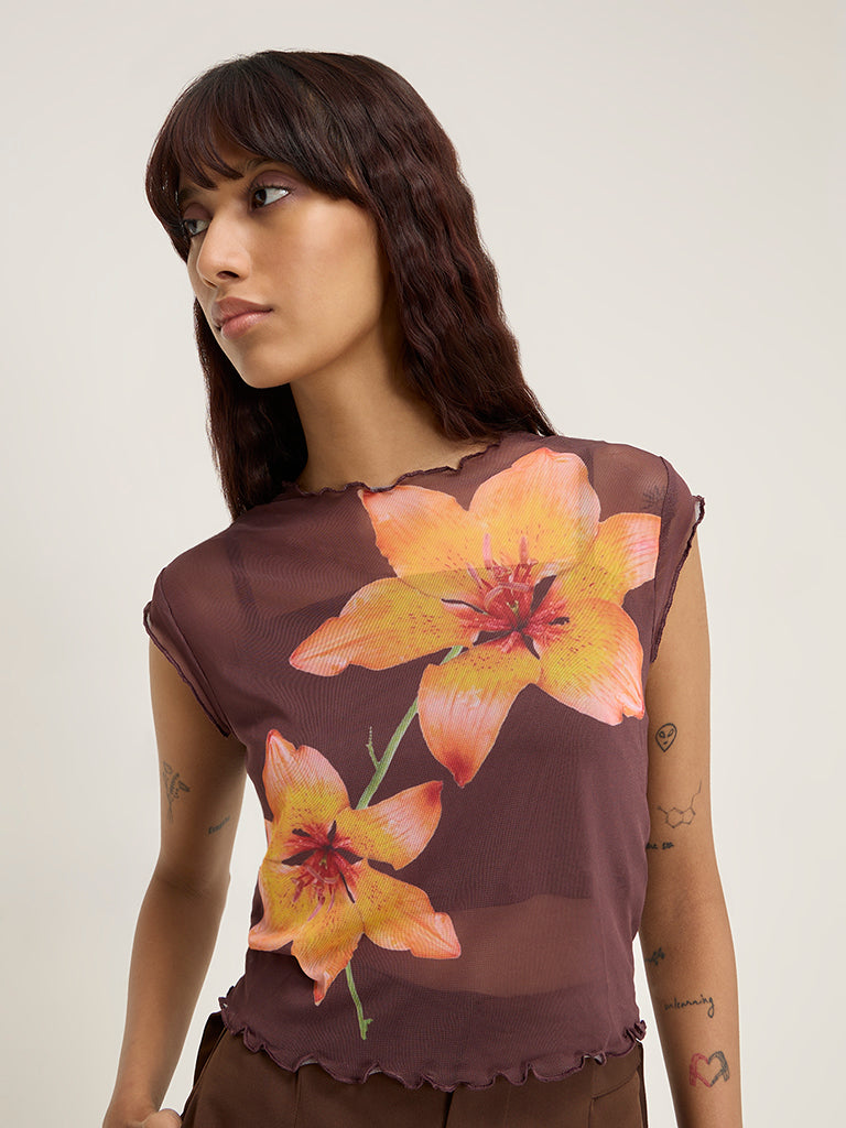 Be the first to review “Nuon Brown Floral Design Mesh Top with Camisole”