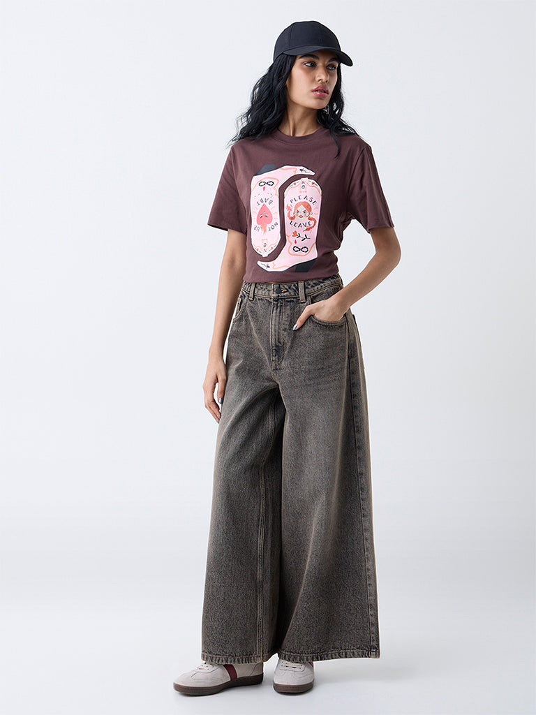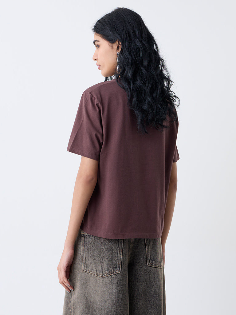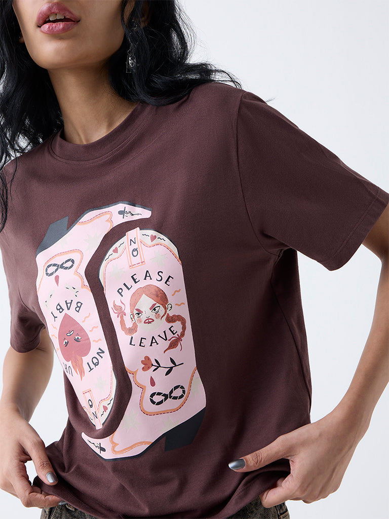 Nuon Brown Printed Cotton-Blend T-Shirt