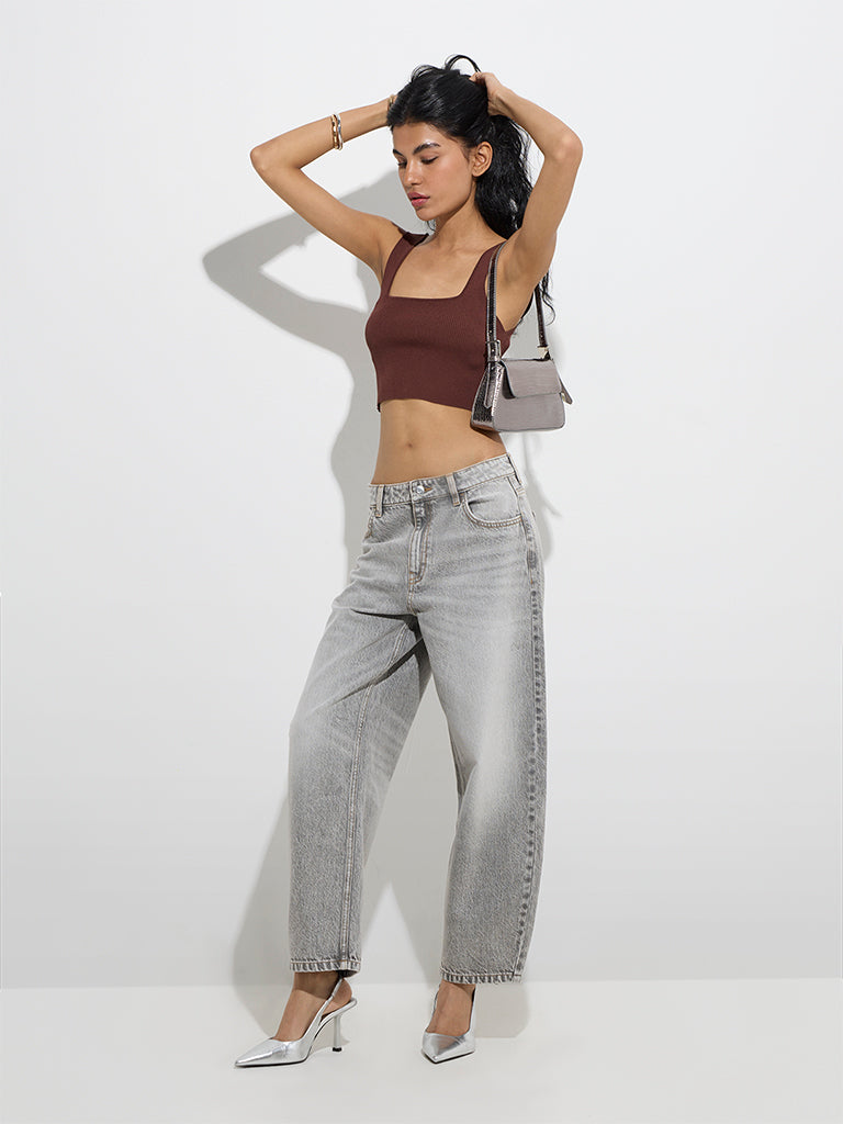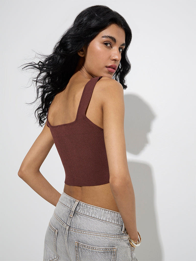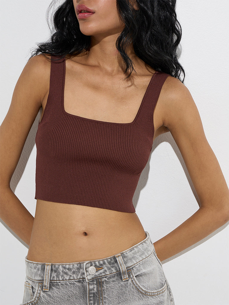 This brown tank top from Nuon brings clean lines and confident ease to your casual edit. Fashioned with a ribbed texture that contours the body. it features a square neck and sleeveless silhouette??serving up a sleek base for everything from wide-leg denims to layered streetwear fits.