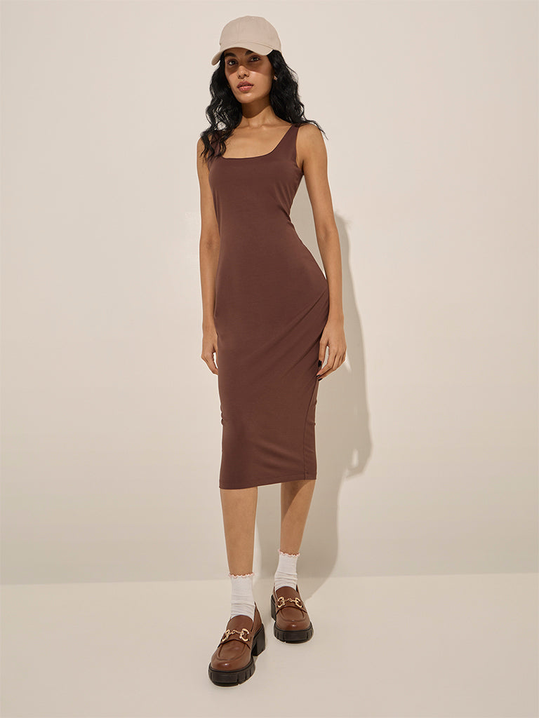 Be the first to review “Nuon Brown Solid Cotton Bodycon Dress”