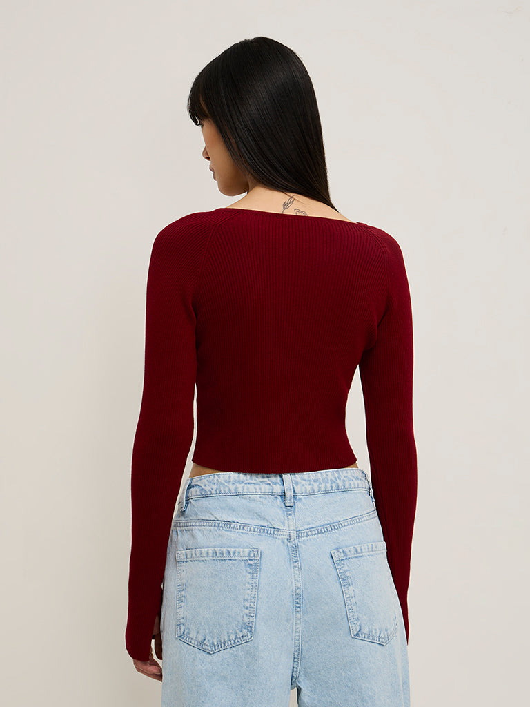 Nuon Burgundy Ribbed-Textured Top