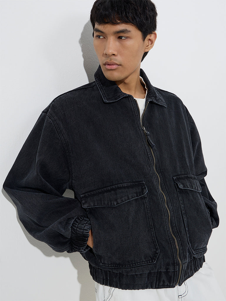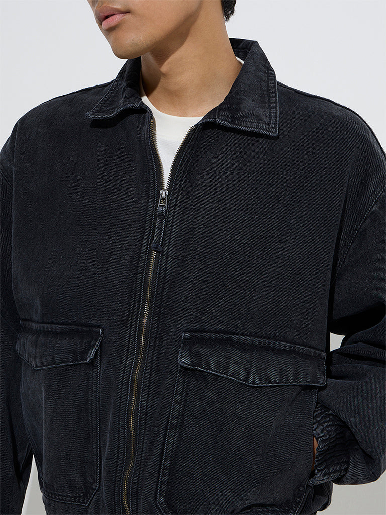 Nuon Charcoal Relaxed-Fit Denim Jacket