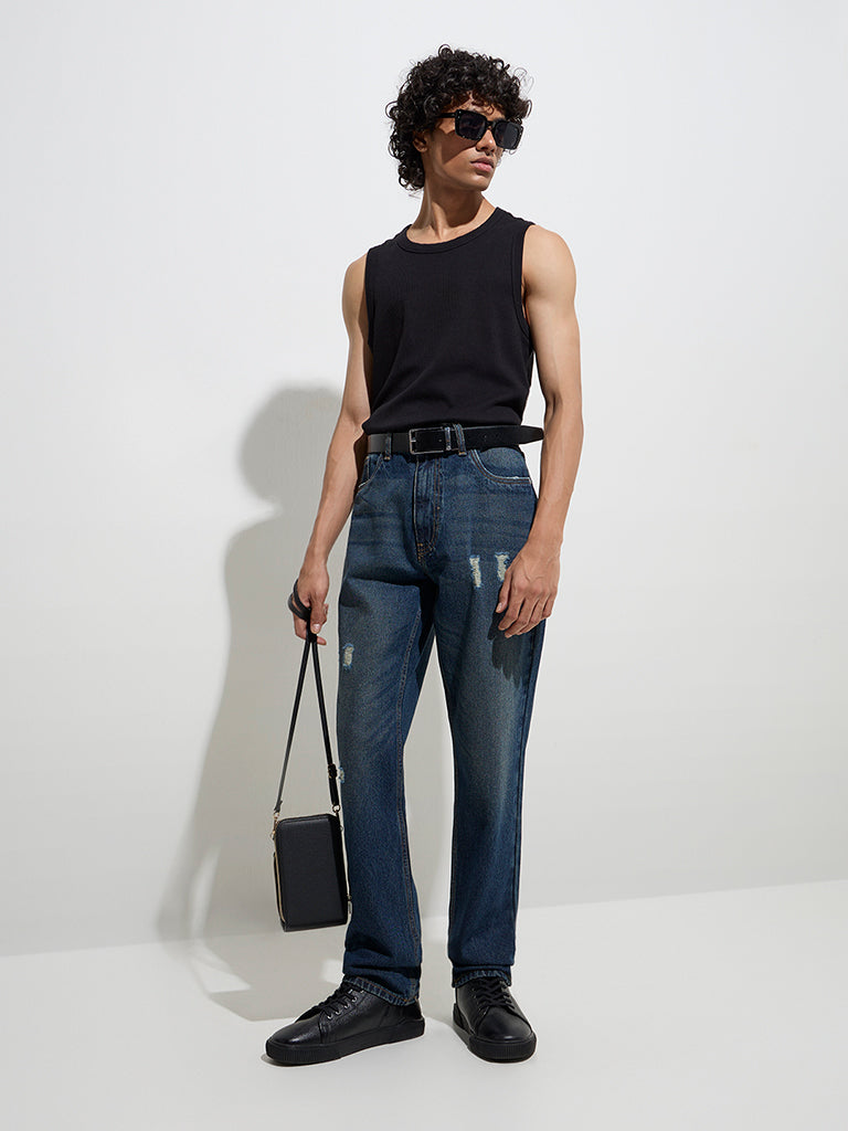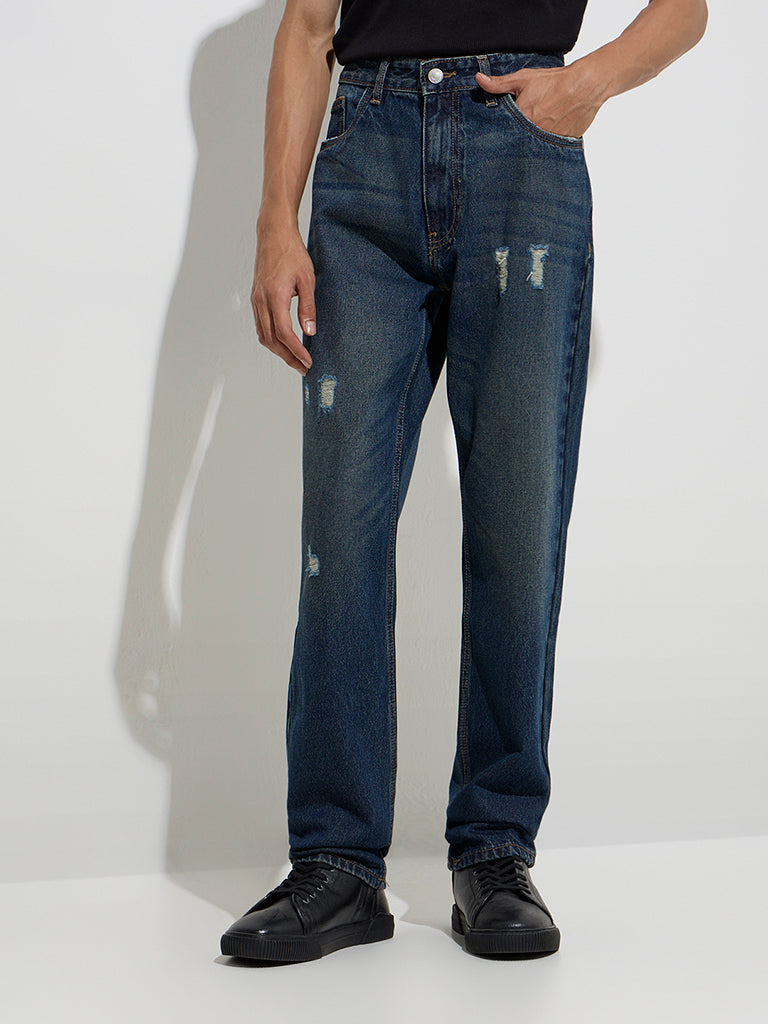 Nuon Dark Blue Relaxed-Fit Mid-Rise Jeans