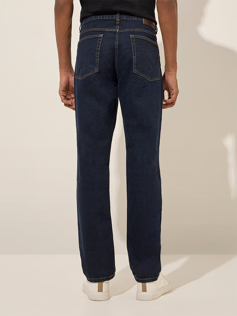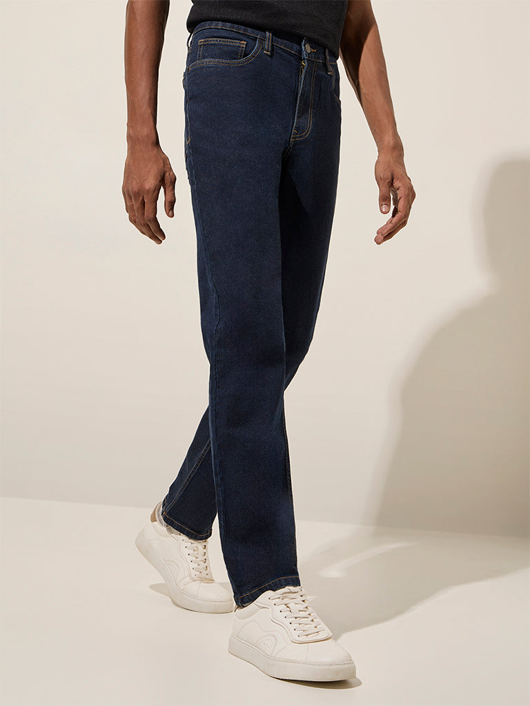 Nuon Dark Blue Straight-Fit Mid-Rise Jeans