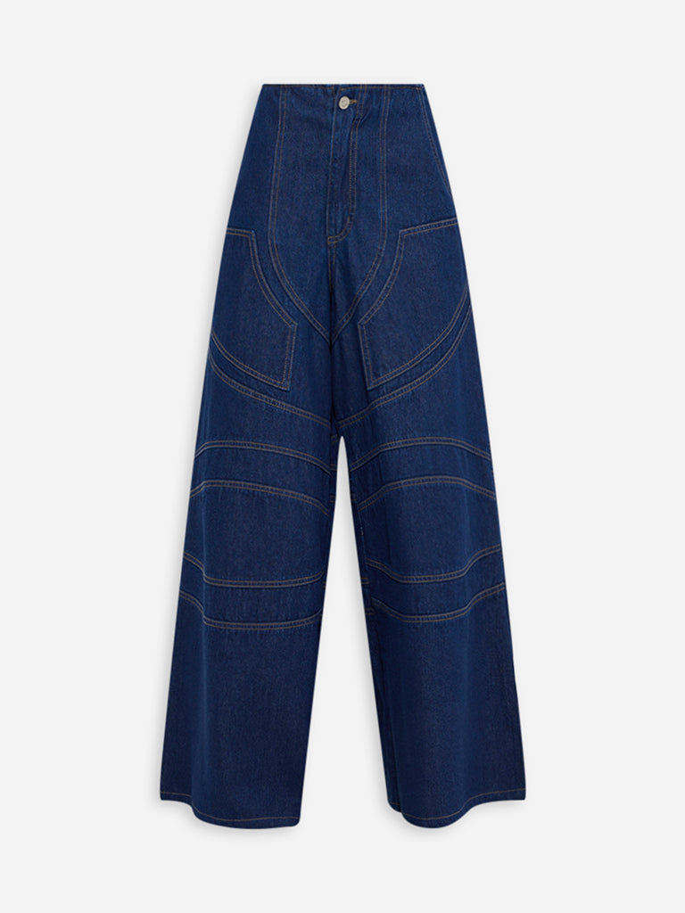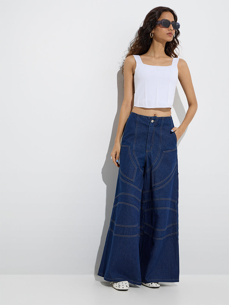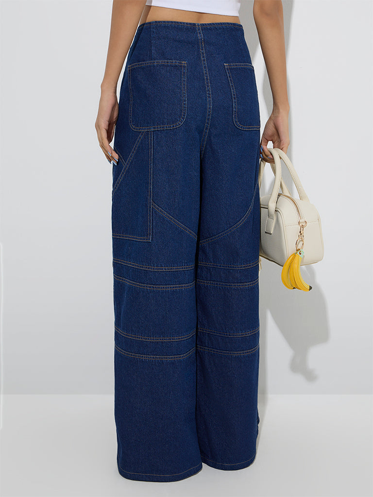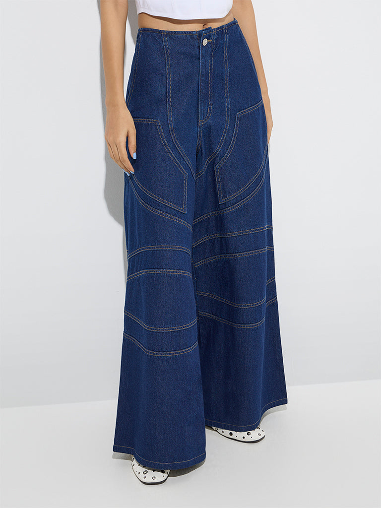 Nuon Dark Blue Wide-Leg High-Rise Jeans