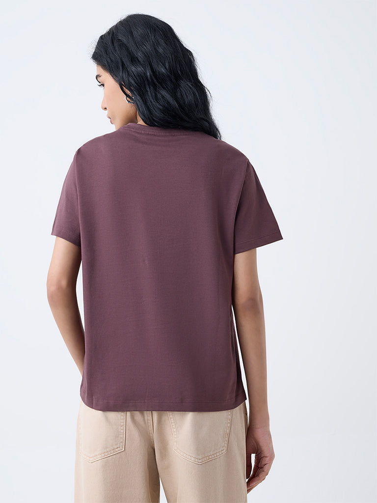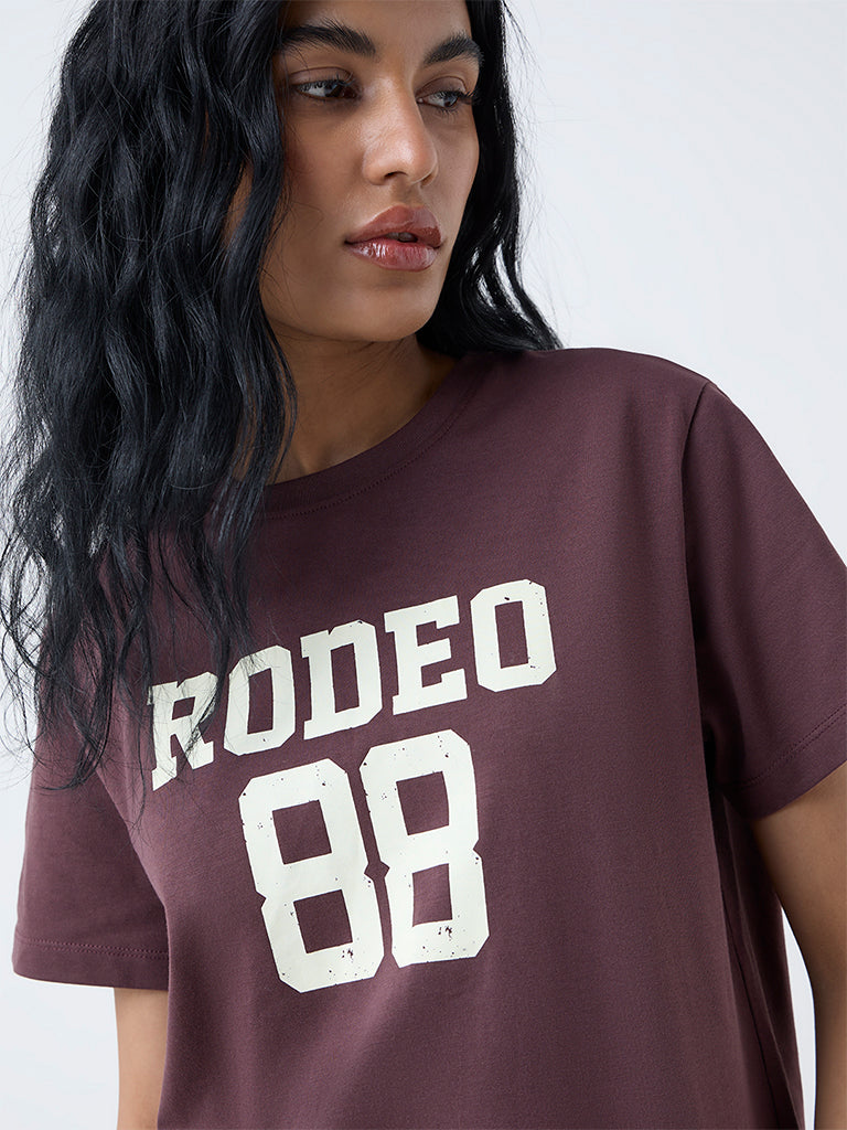 Nuon dials up the street vibe with this dark brown t-shirt. Milled from pure cotton for an easy fit. it’s splashed with bold text and numerical prints that give it a graphic punch. Designed with a round neck and short sleeves. it’s a no-brainer for casual layering.