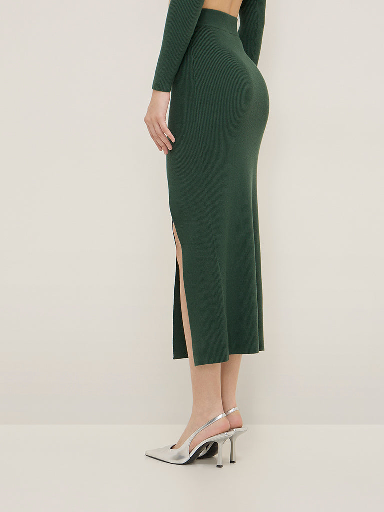 Nuon Dark Green Ribbed Textured High-Rise Cotton-Blend Skirt