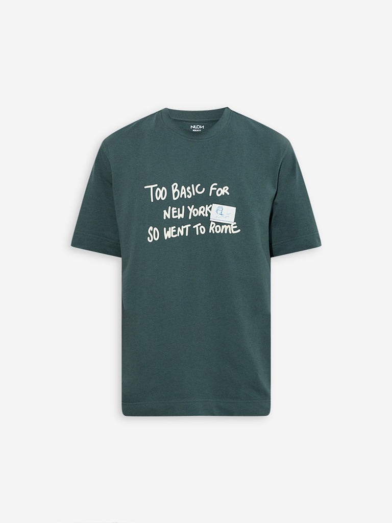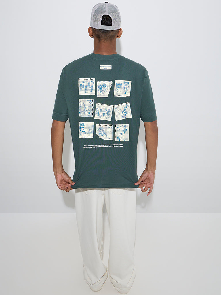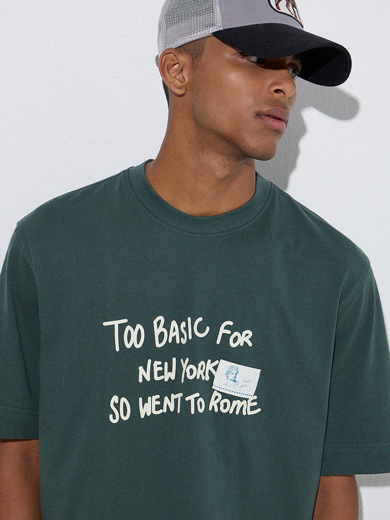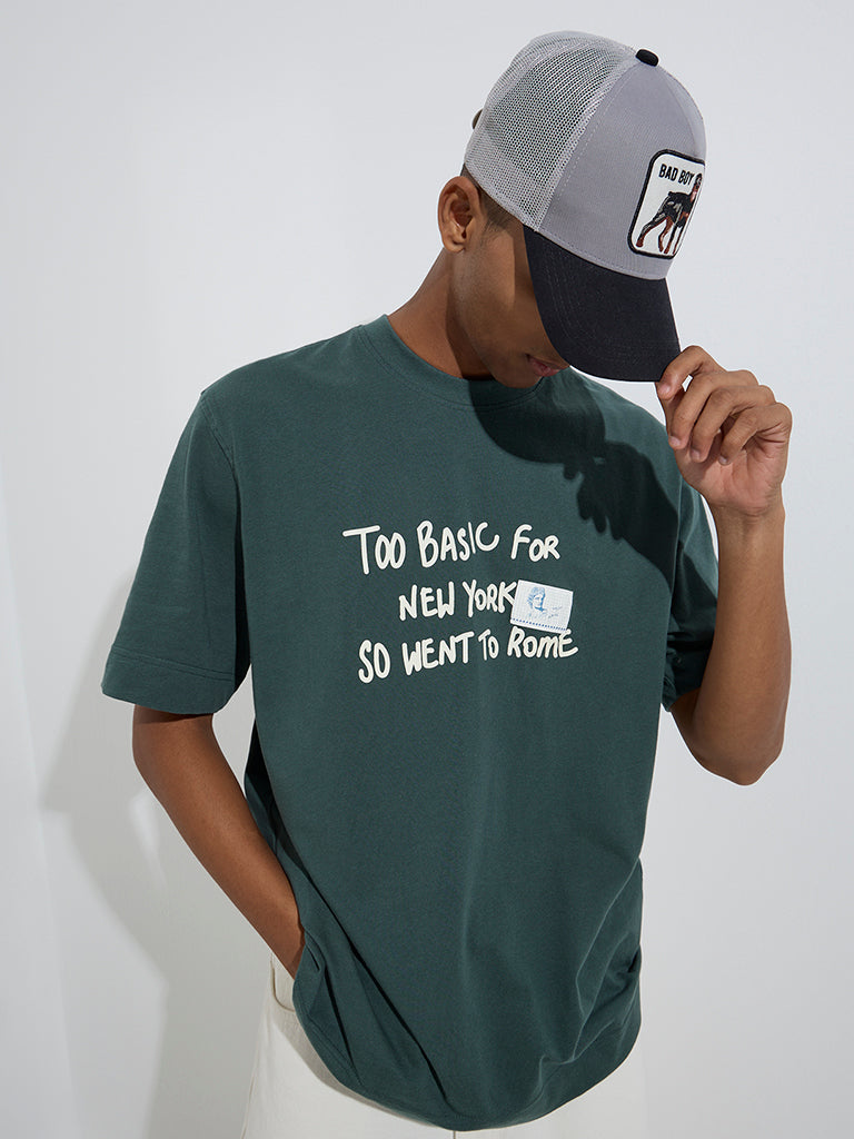 Nuon Dark Green Typographic Relaxed-Fit Cotton T-Shirt