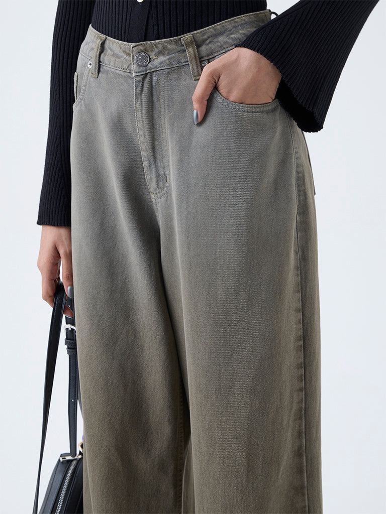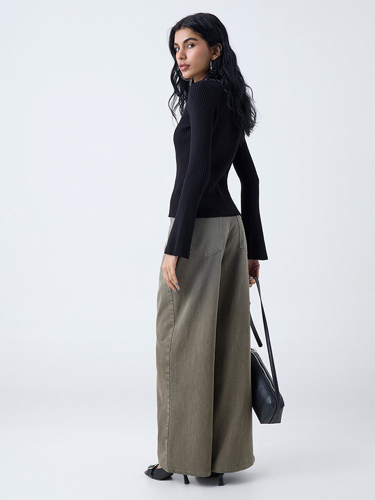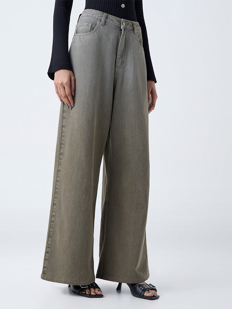 Nuon Dusty Olive Relaxed-Fit High-Rise Jeans