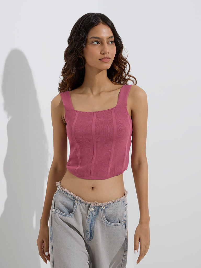 Nuon launches this dusty pink top. featuring a flattering corset-style silhouette with a square neckline and sleeveless design. Crafted from a knitted fabric. this piece offers a comfortable fit. making it an ideal choice for effortless summer styling.