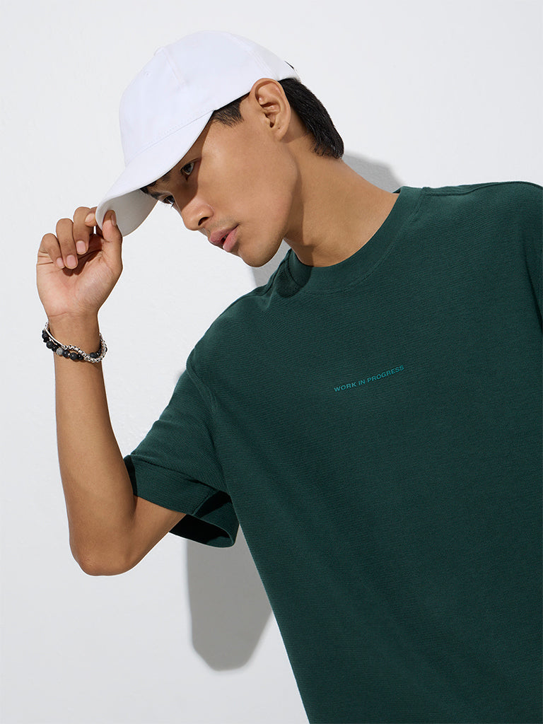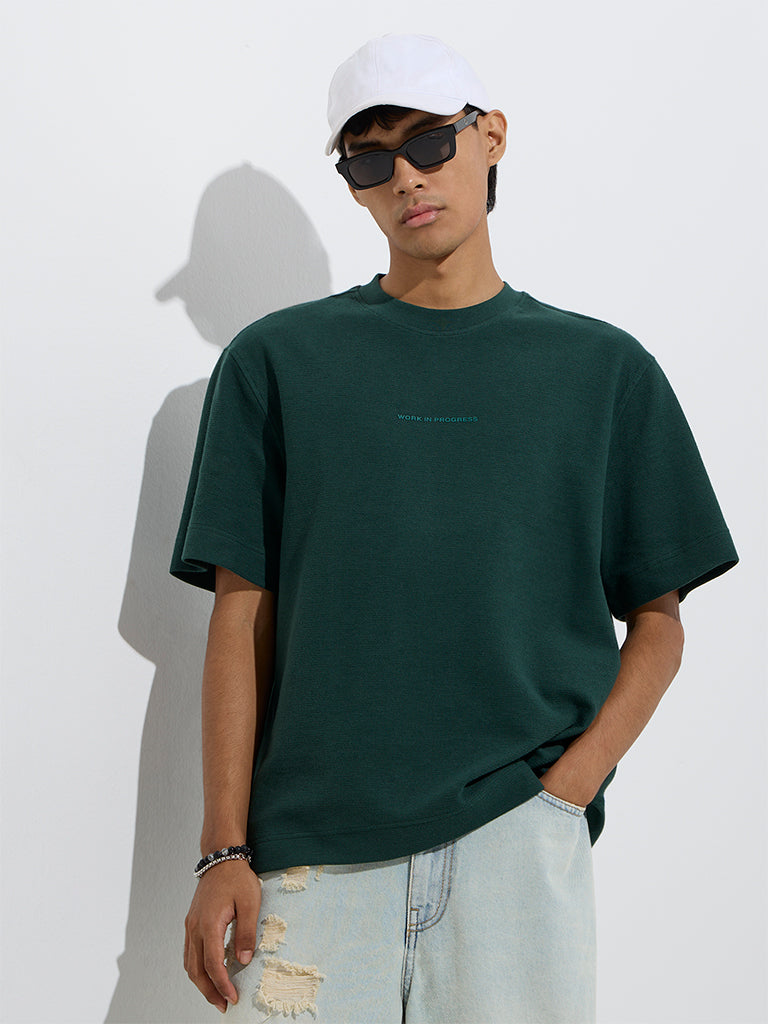 Nuon Emerald Green Typographic Relaxed-Fit Cotton T-Shirt