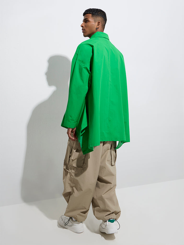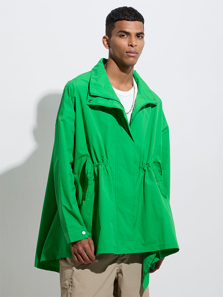 This green parka jacket from Nuon is a rain-ready essential. built to keep you dry and comfortable during sudden showers. Crafted in a relaxed silhouette from quick-dry fabric. it features a high neck with a snap-button placket and drop shoulders for easy layering. Kangaroo pockets complete the look with a practical touch.