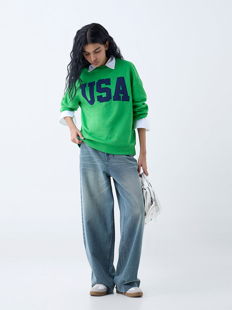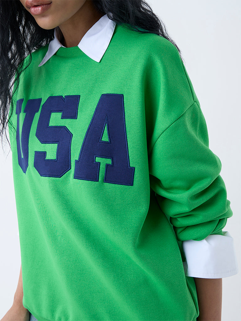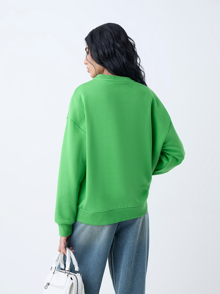 Nuon Green Text Detailed Cotton-Blend Sweatshirt