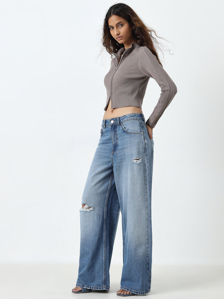 Nuon presents this grey cardigan in a ribbed design. Crafted with soft and breathable fabric. the winter wear has a high neck attached to a sleek zipline and full sleeves.