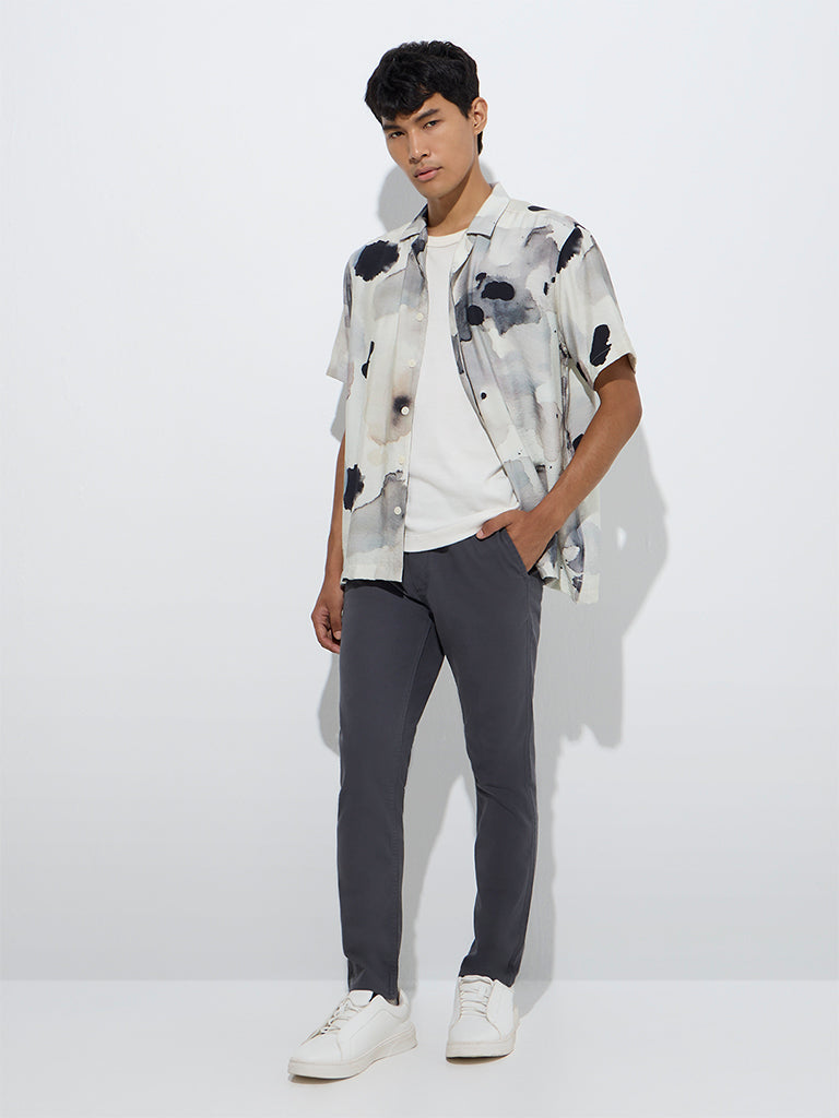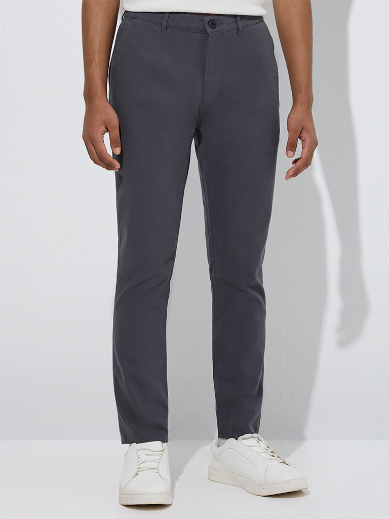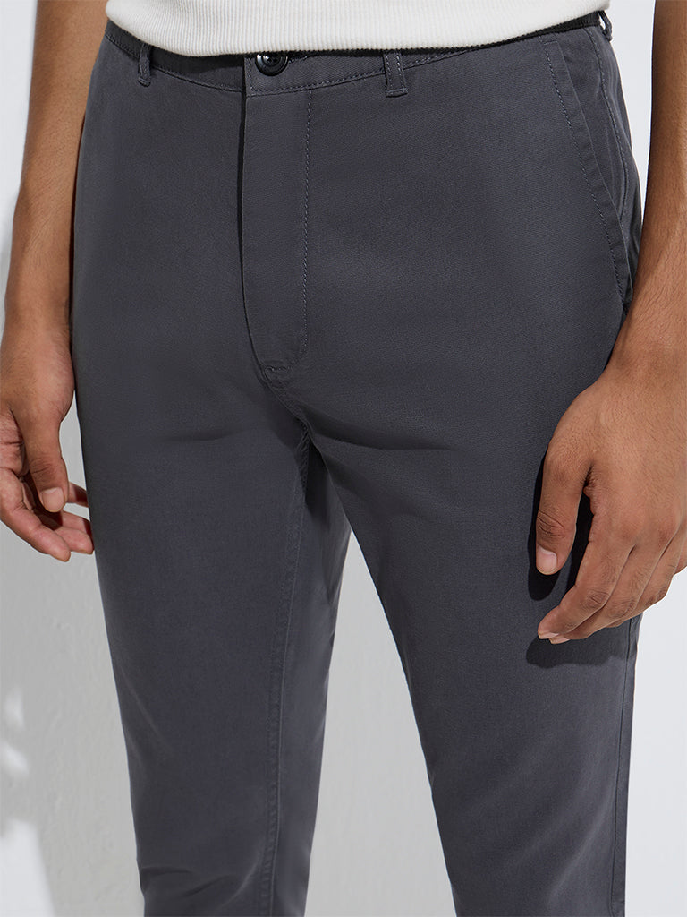 Nuon Grey Solid Relaxed-Fit Cotton-Blend Chinos