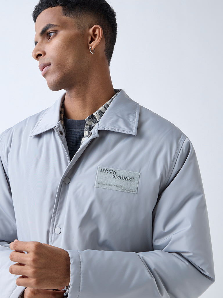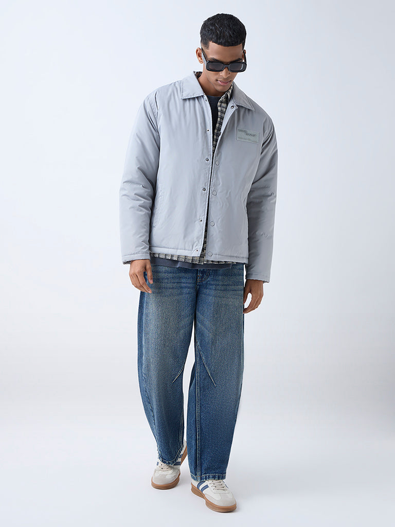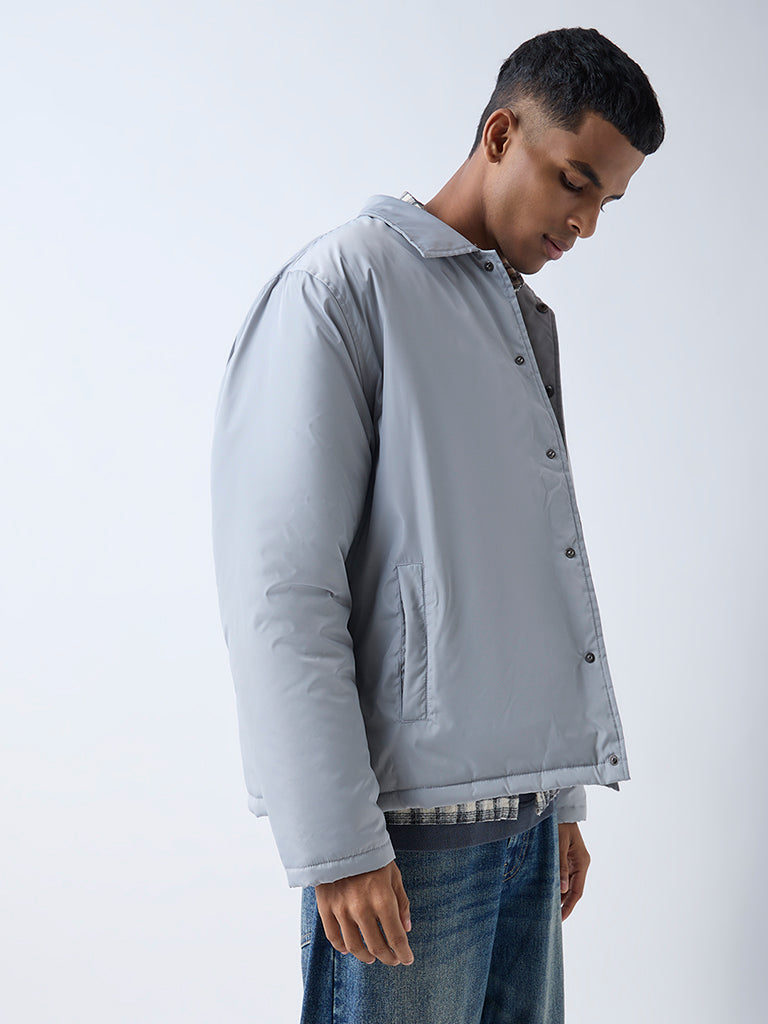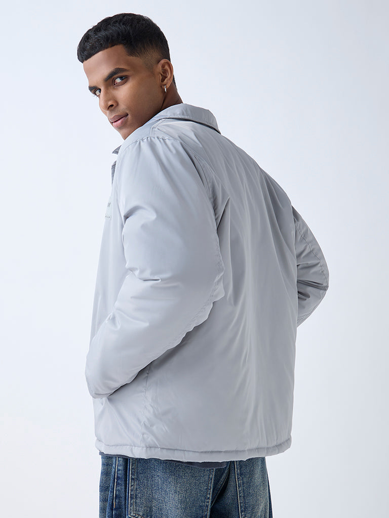 Refresh your outerwear lineup with this grey jacket from Nuon. Framed in a relaxed fit. it features a puffer-inspired design that brings shape and dimension without feeling heavy. The structured collar. button-up front and full sleeves allows a balanced coverage while the kangaroo pockets add ease and utility.