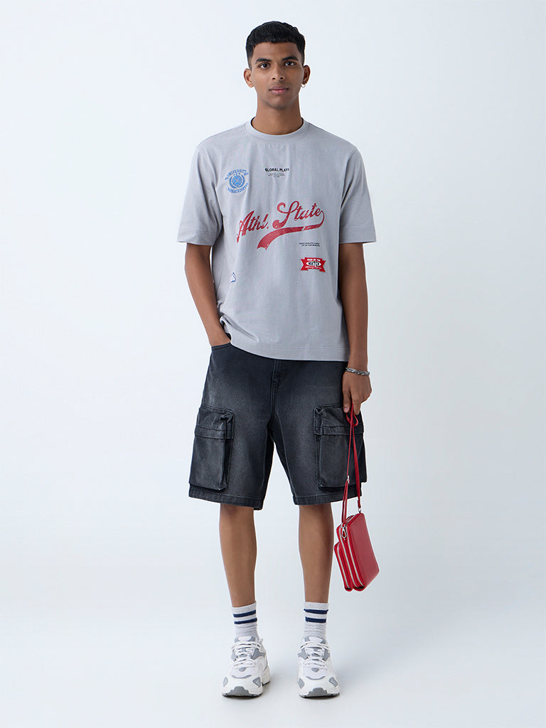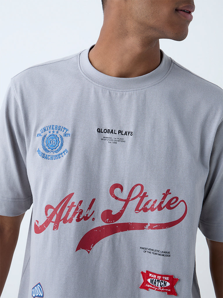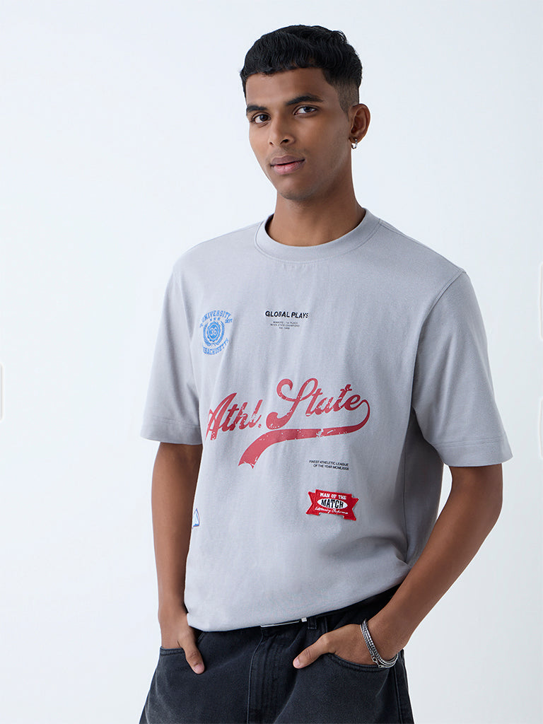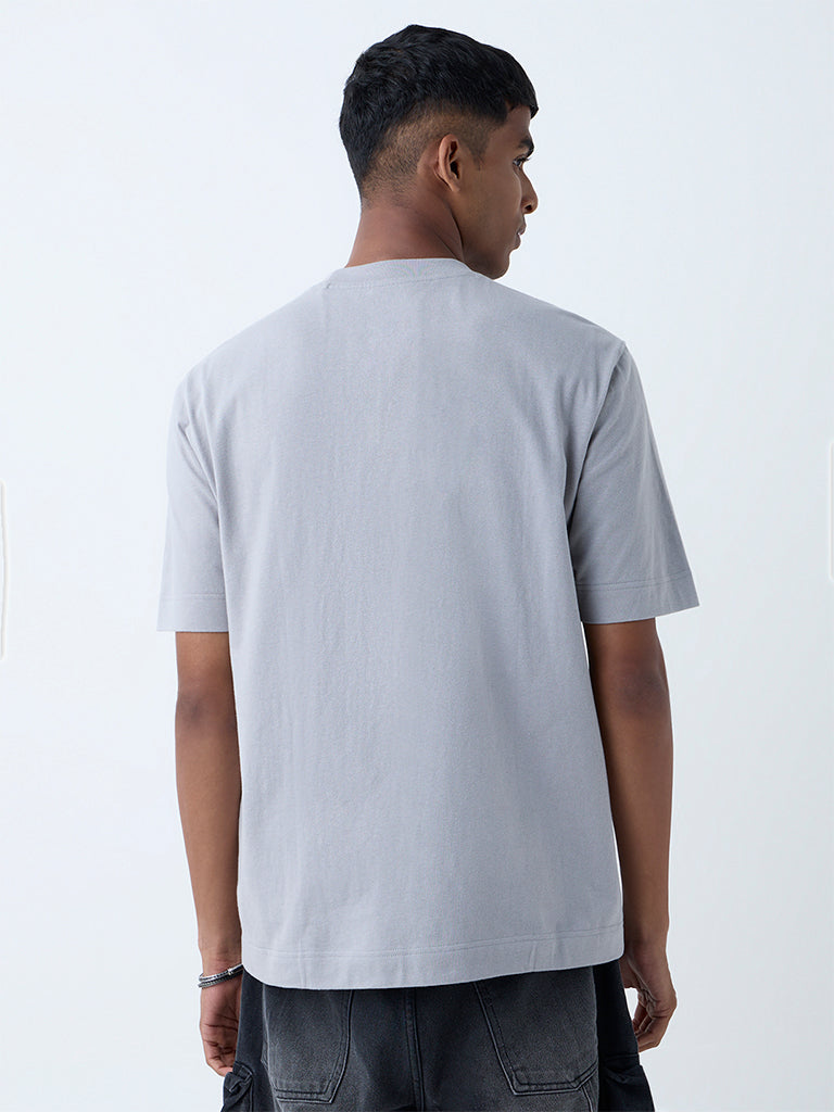 Nuon Grey Typographic Relaxed-Fit Cotton T-Shirt