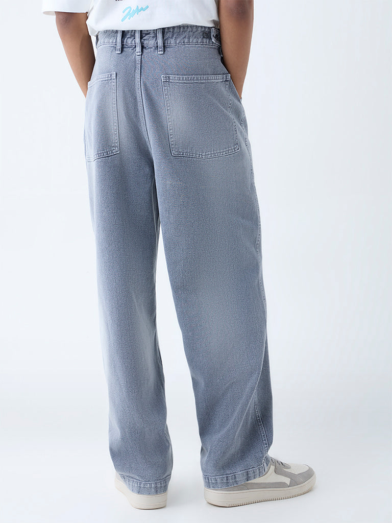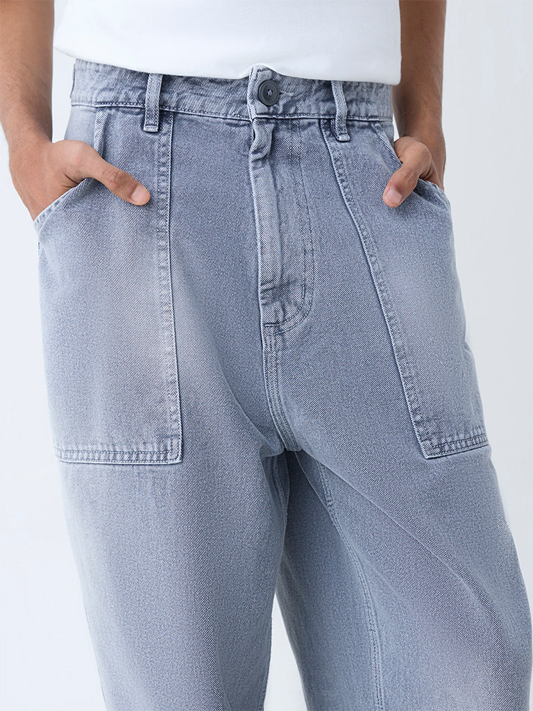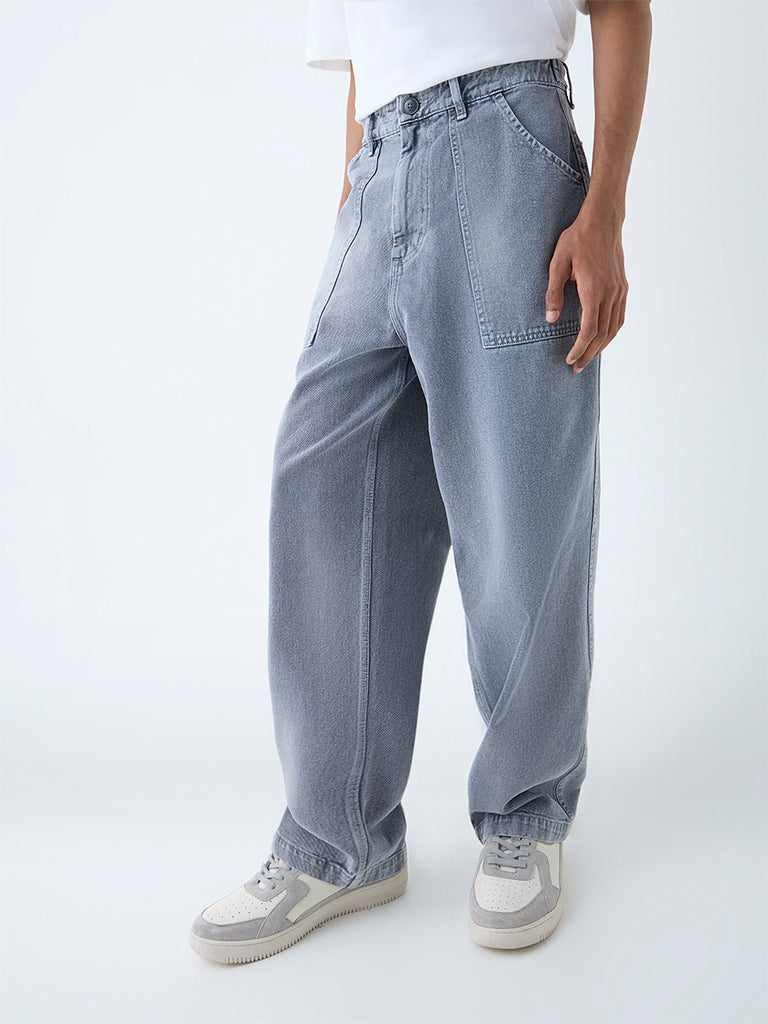 Nuon Grey Washed Loose-Fit Mid-Rise Jeans
