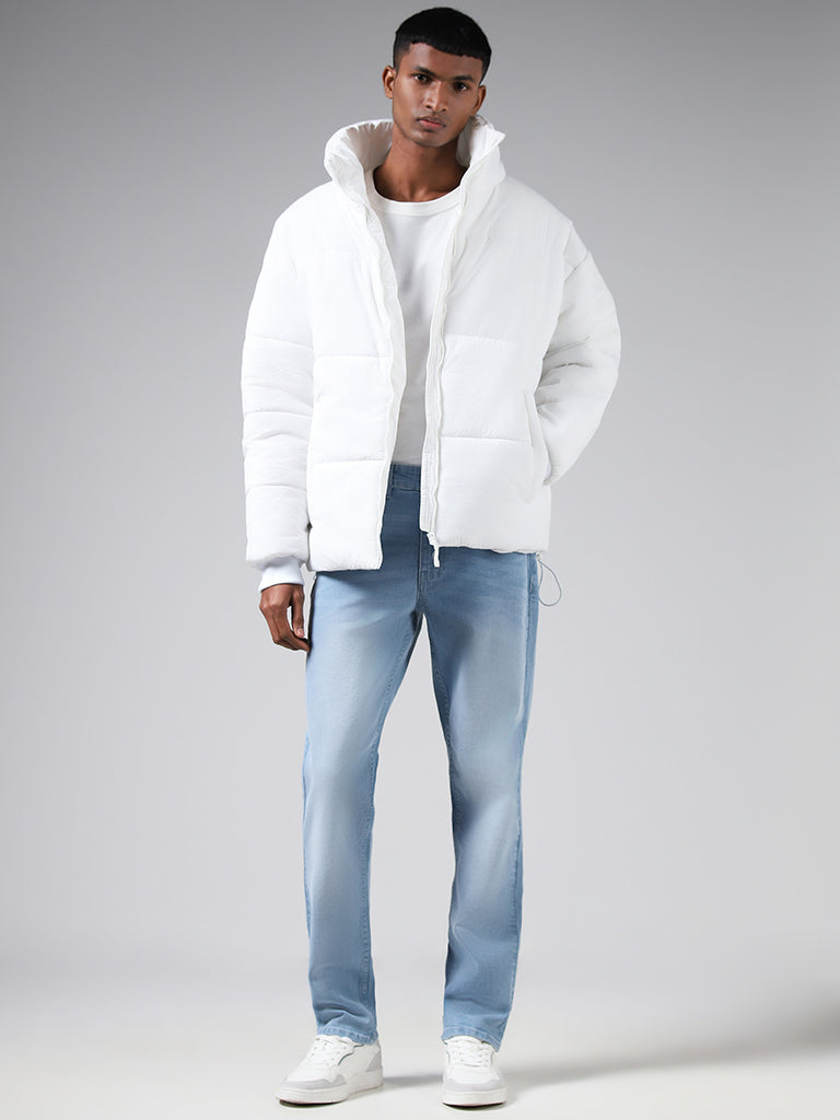Revel in timeless style with the Nuon jeans a wardrobe essential that seamlessly combines comfort and fashion. Crafted in a relaxed fit. these ice blue mid rise jeans offer a classic silhouette suitable for various occasions. The pockets on the front and back add a functional touch. while the light faded detailing in the middle enhances the denim’s character.