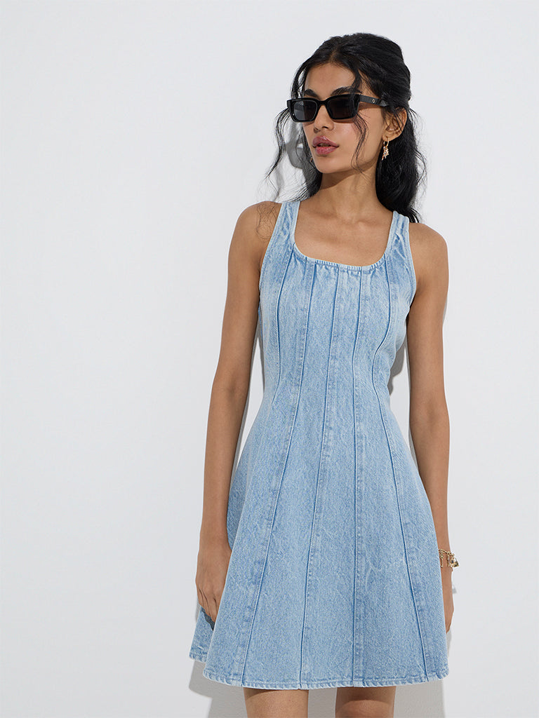 Nuon Light Blue A-Line Denim Dress