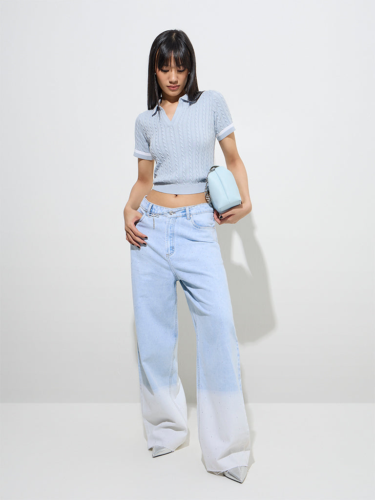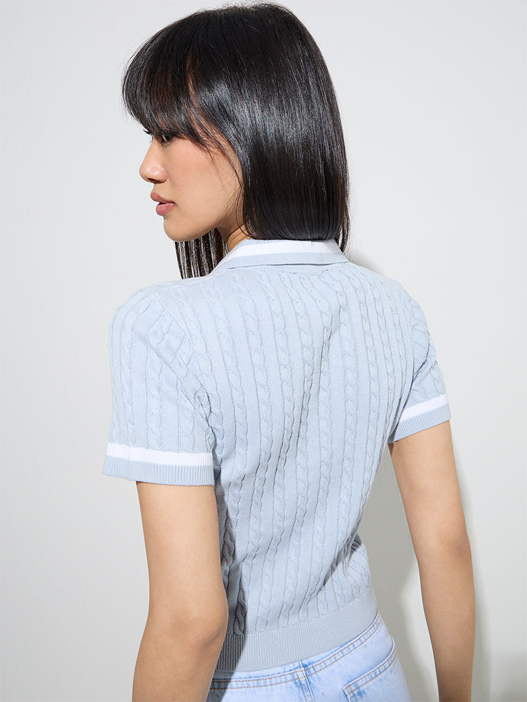 Nuon Light Blue Cable-Knitted Cotton T-Shirt