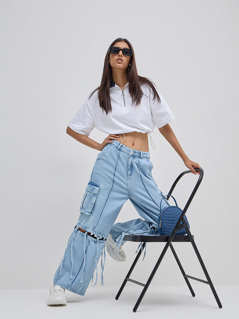 Be the first to review “Nuon Light Blue Cargo-Style Relaxed-Fit High-Rise Jeans”