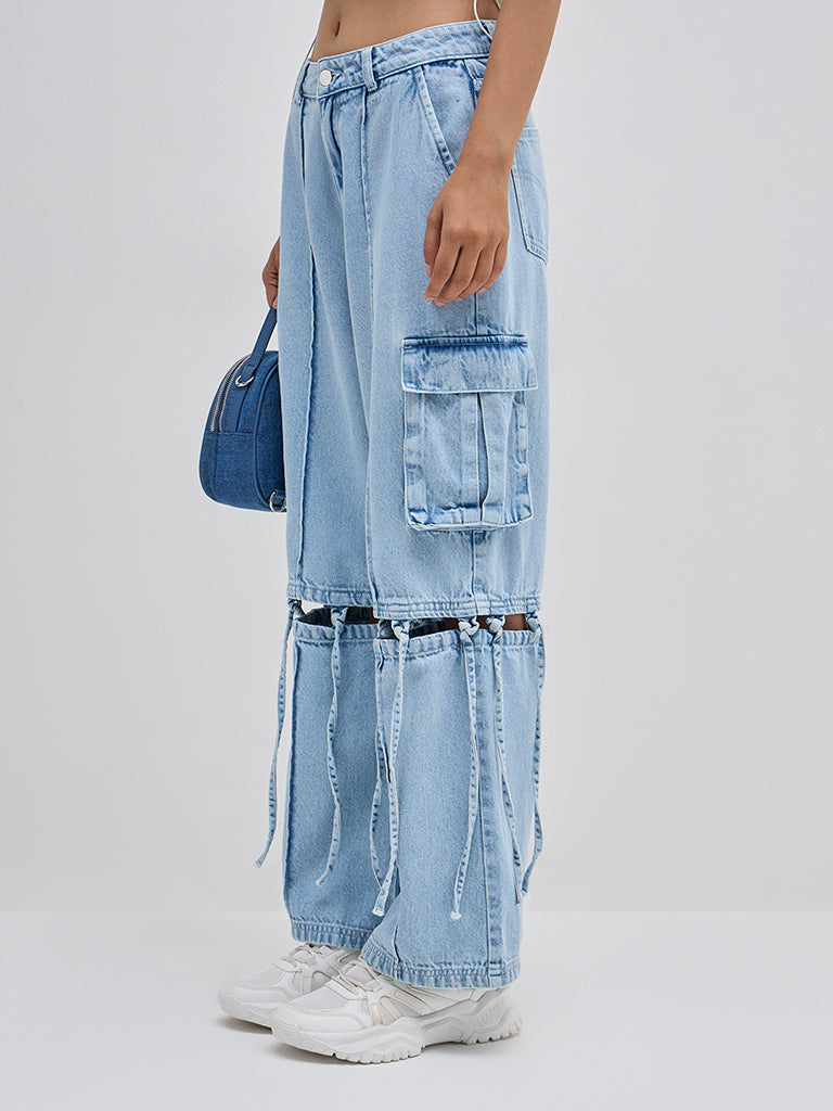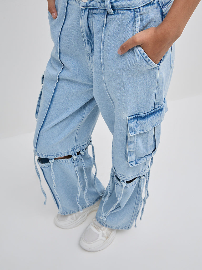 Nuon Light Blue Cargo-Style Relaxed-Fit High-Rise Jeans