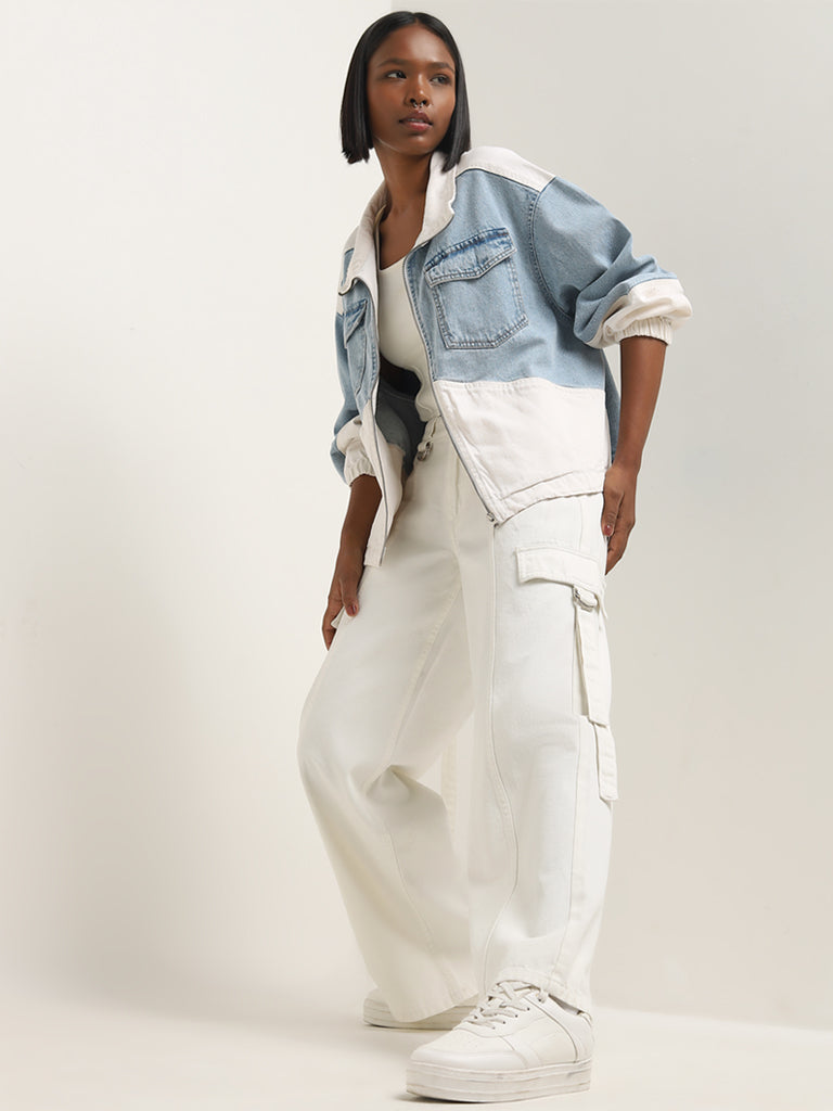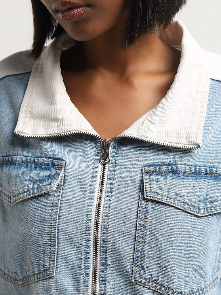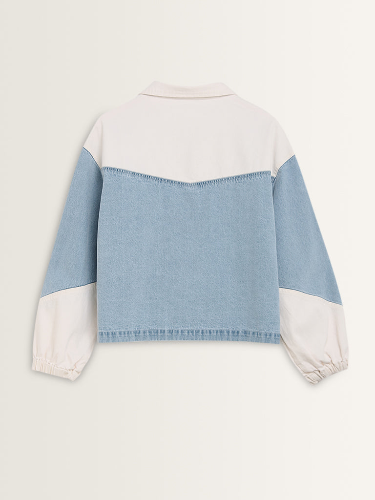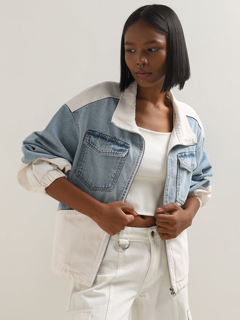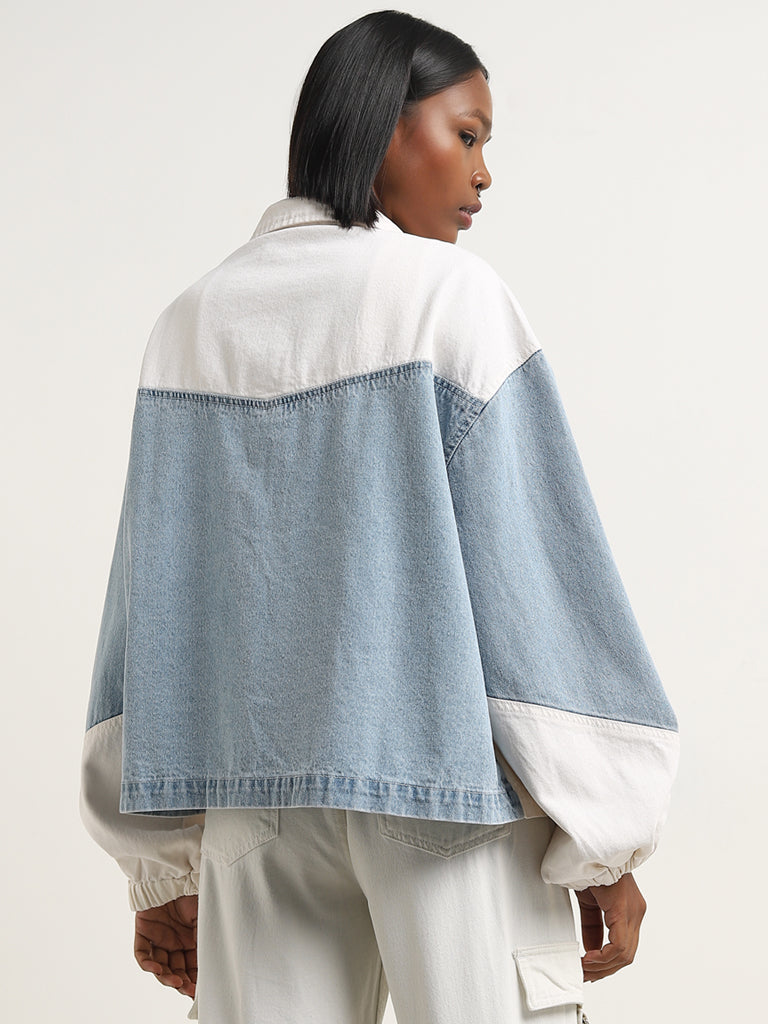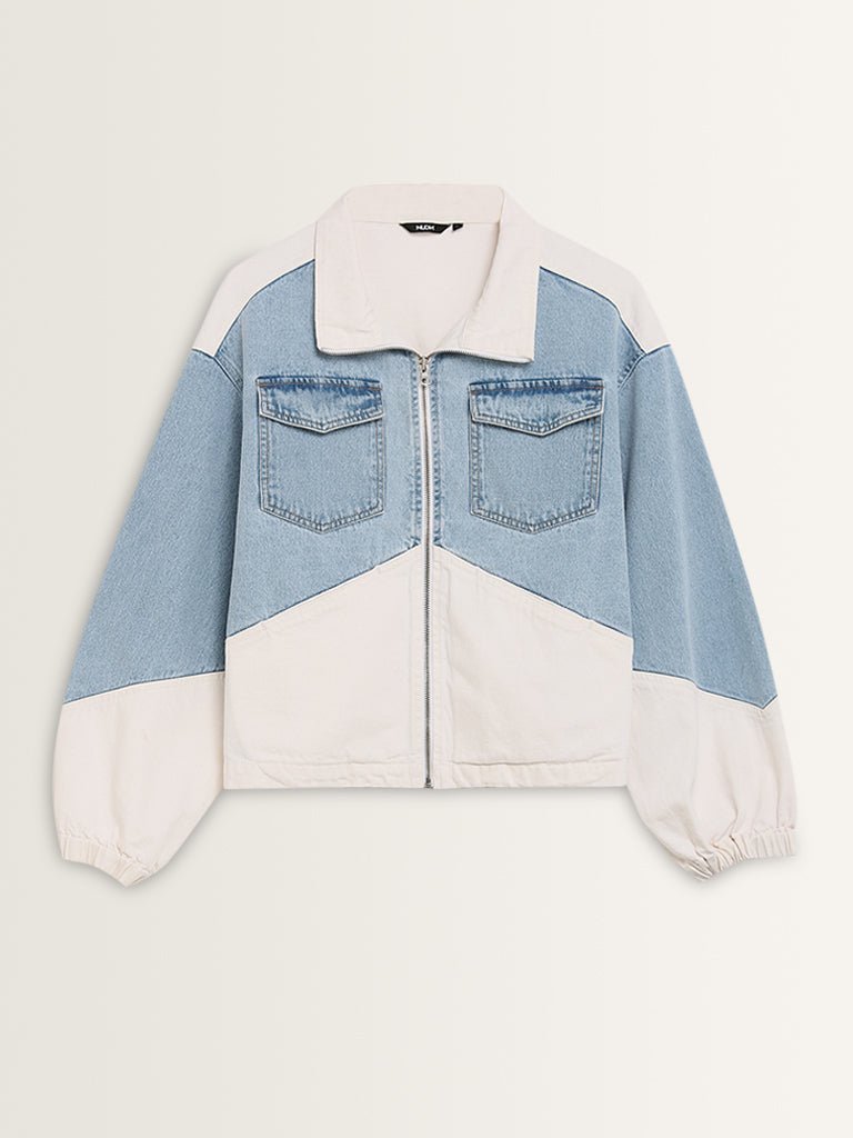 Nuon Light Blue Colour-Blocked Denim Jacket