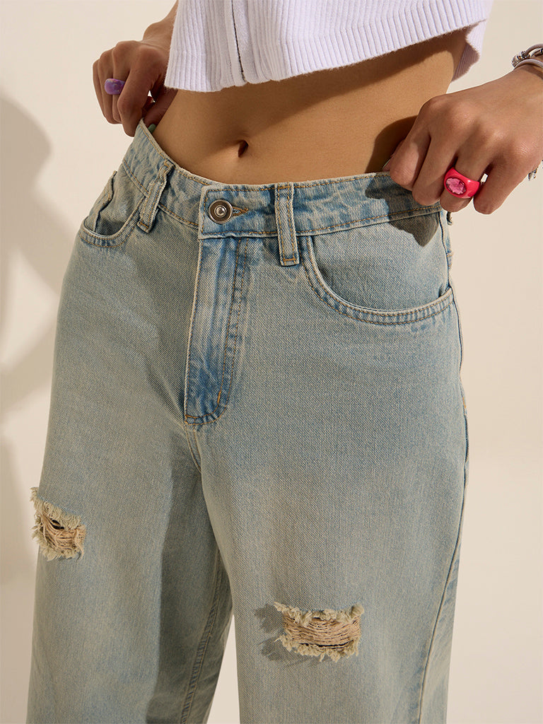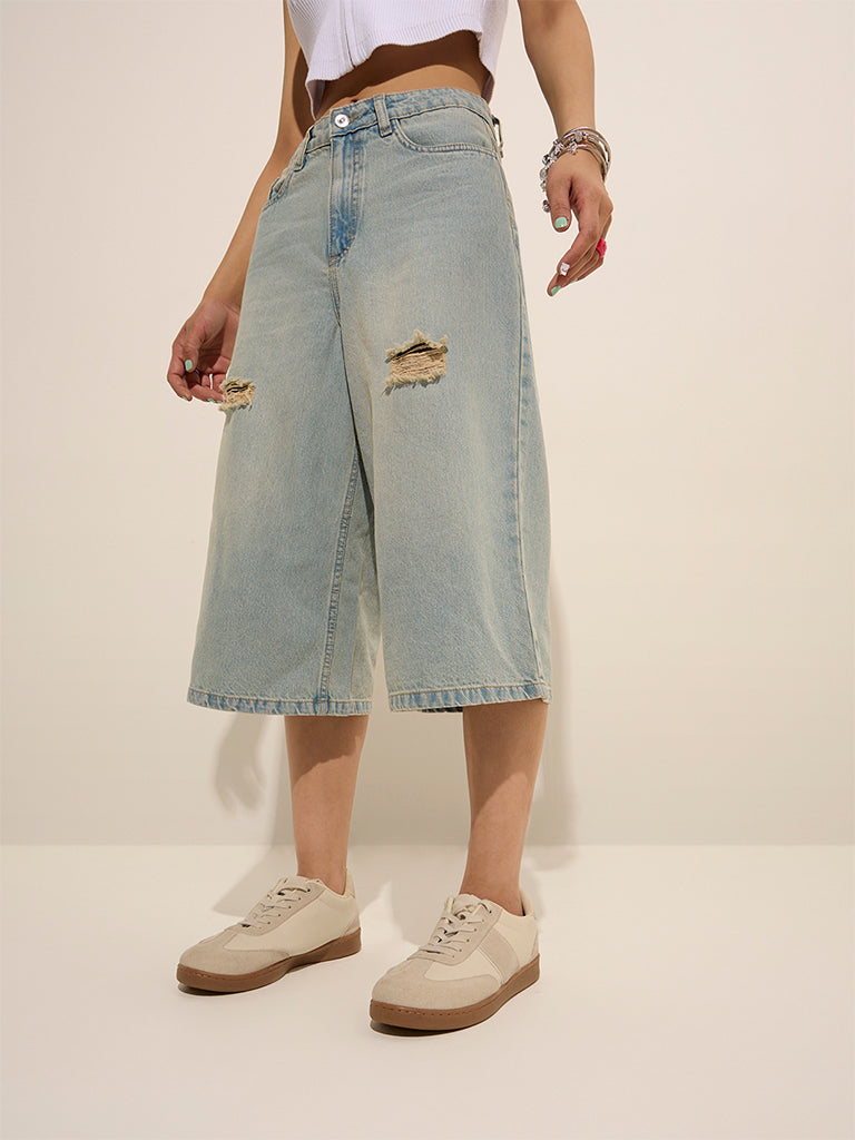 Nuon Light Blue Distressed Mid-Rise Jorts