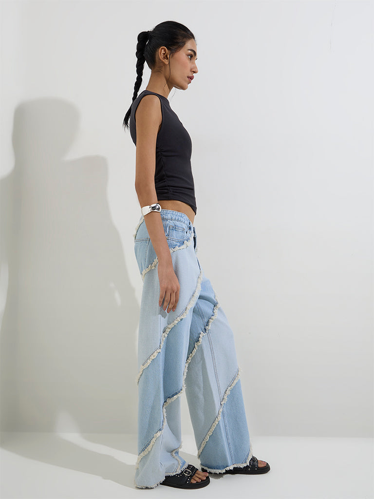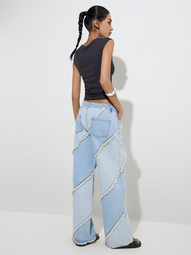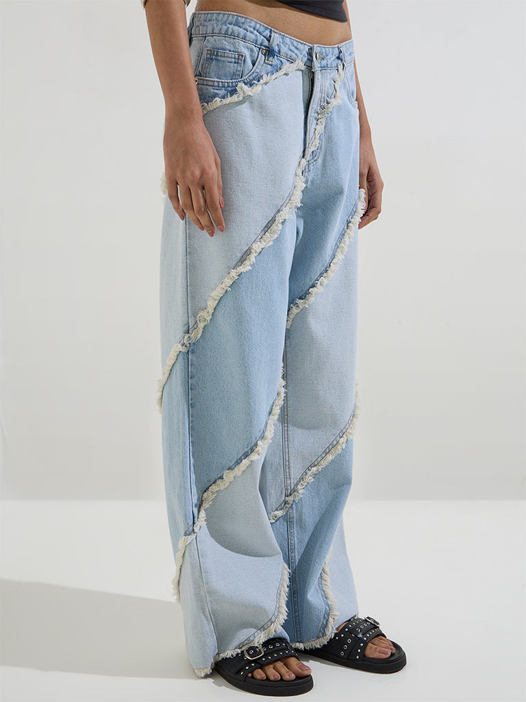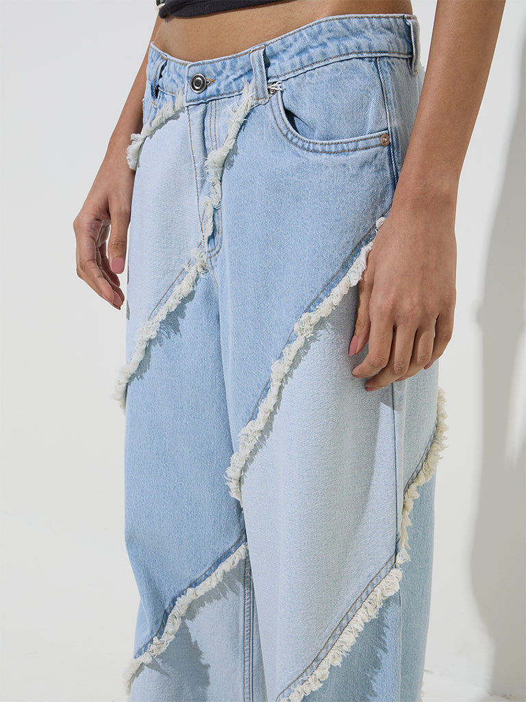 Nuon Light Blue Fringe-Detailed Relaxed-Fit High-Rise Jeans