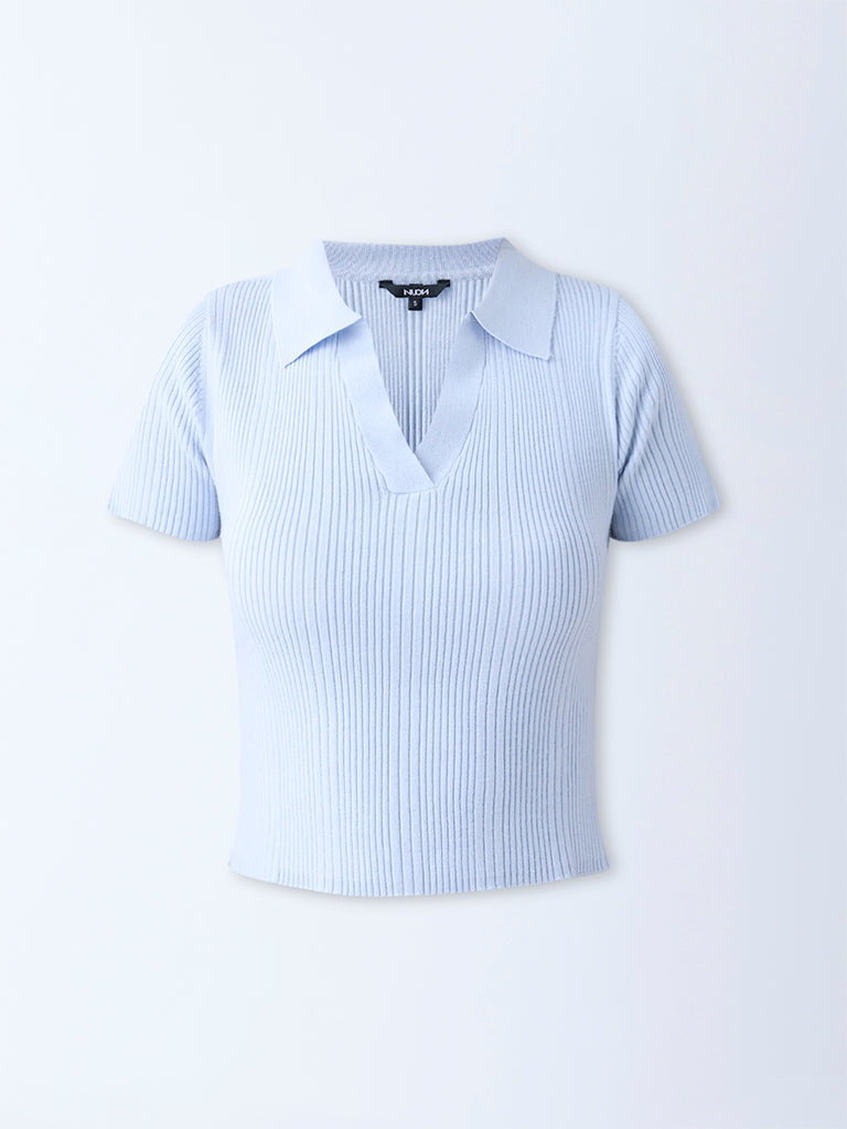Nuon Light Blue Ribbed-Textured T-Shirt