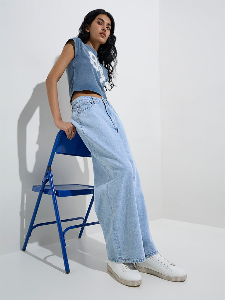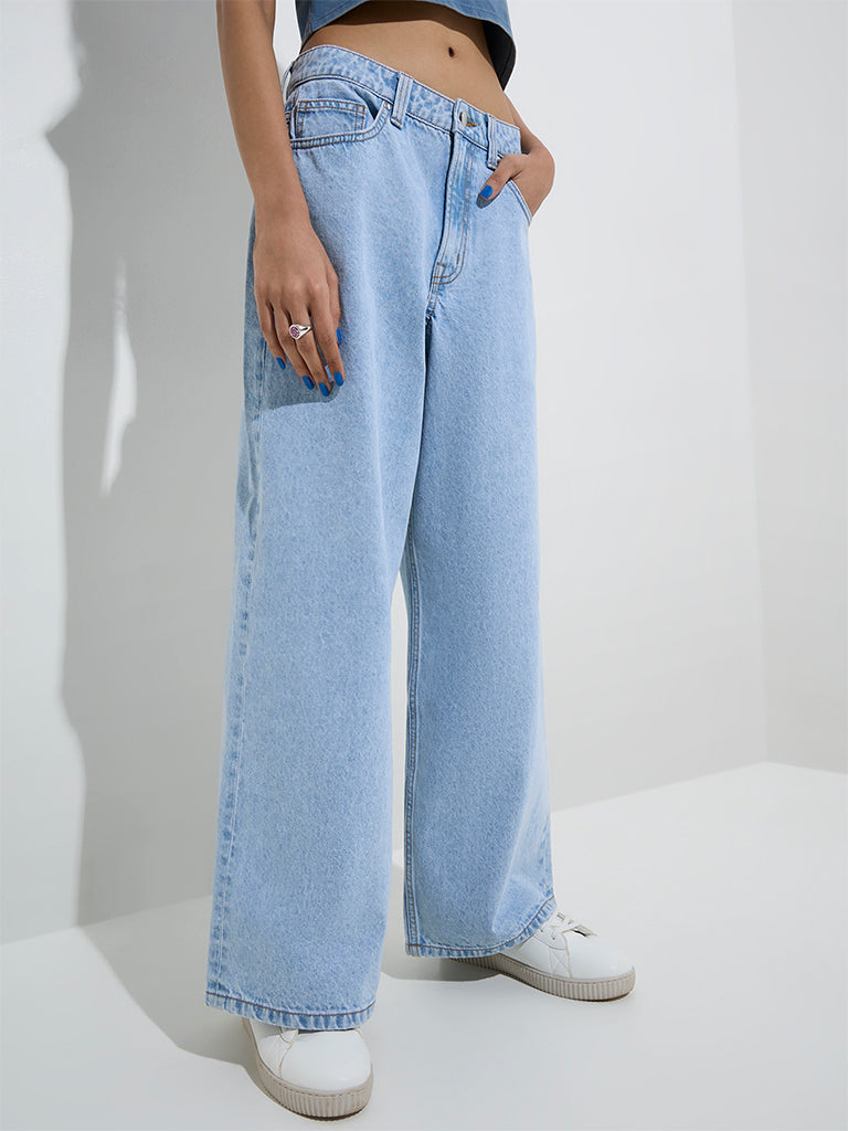 Nuon Light Blue Straight-Fit High-Rise Jeans