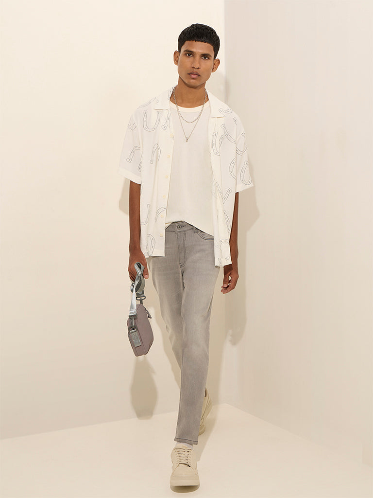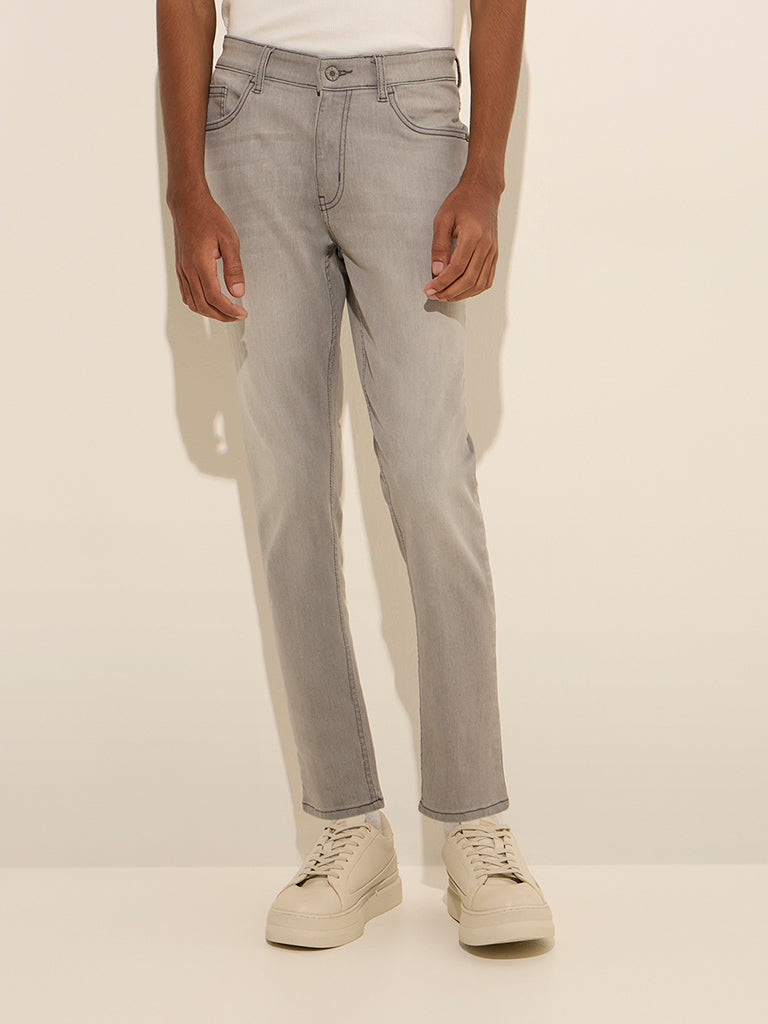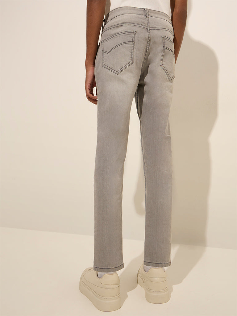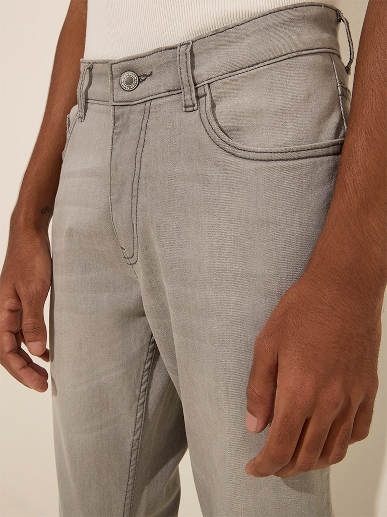 Nuon Light Grey Carrot-Fit Mid-Rise Jeans