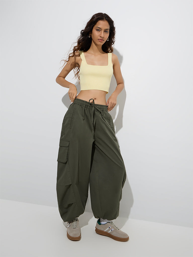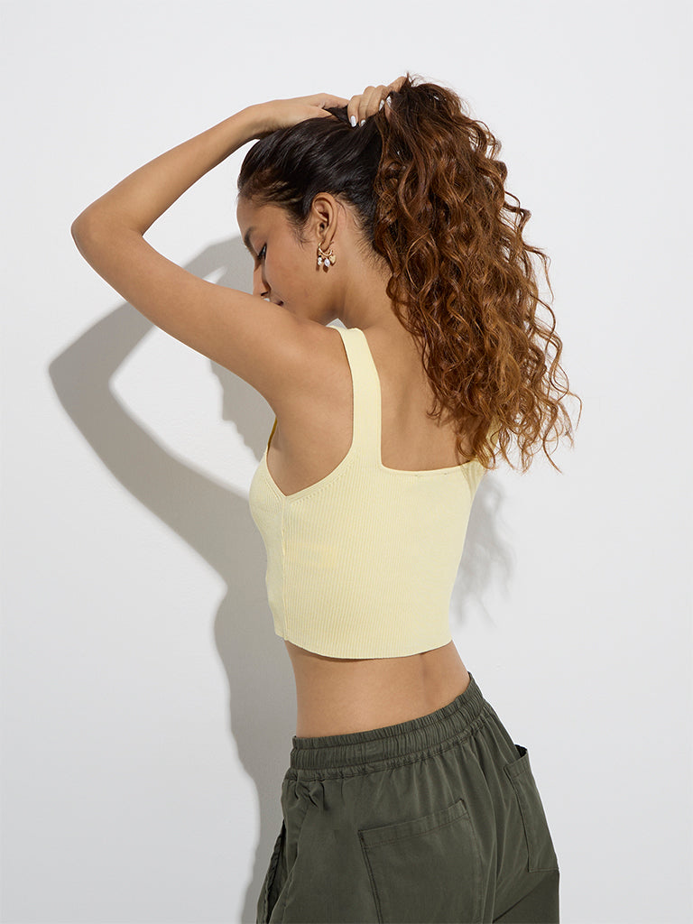 Nuon Light Yellow Ribbed-Textured Crop Top