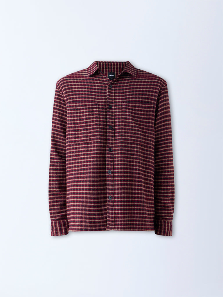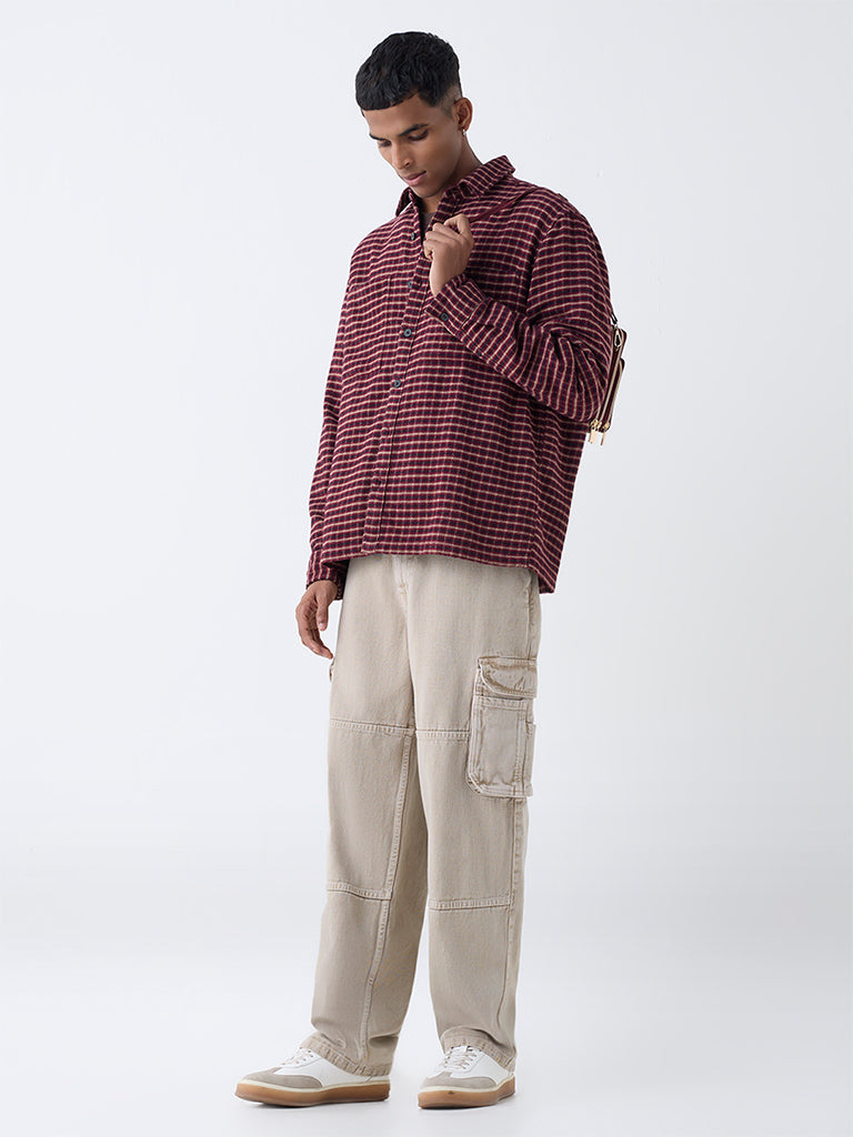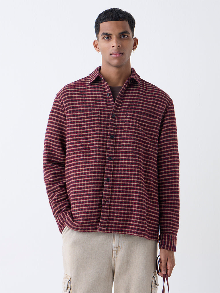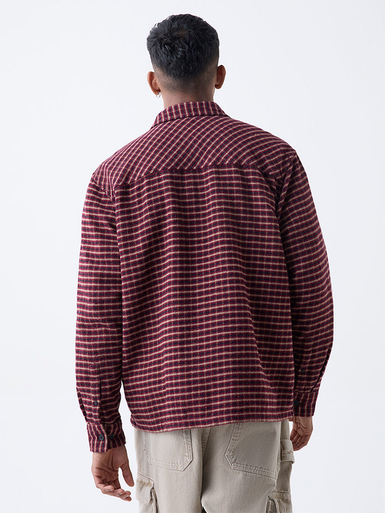 Nuon Maroon Checkered Relaxed-Fit Cotton Shirt