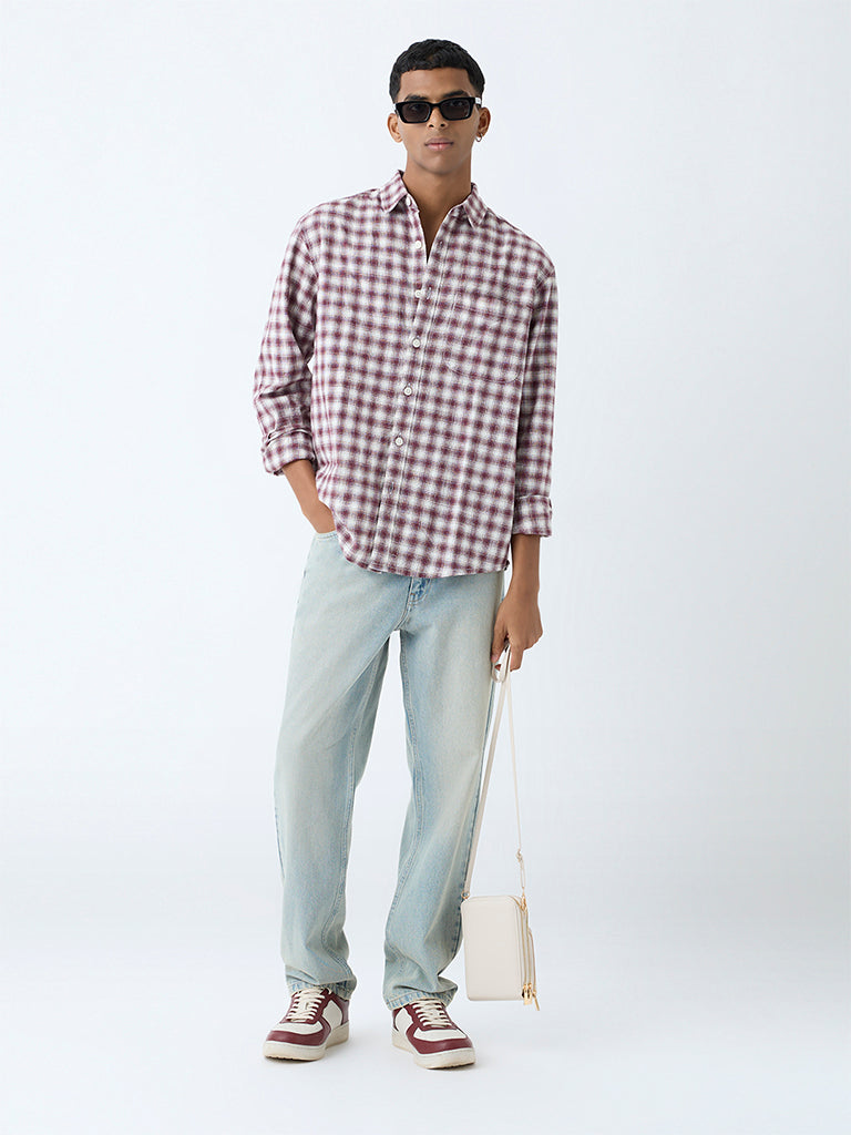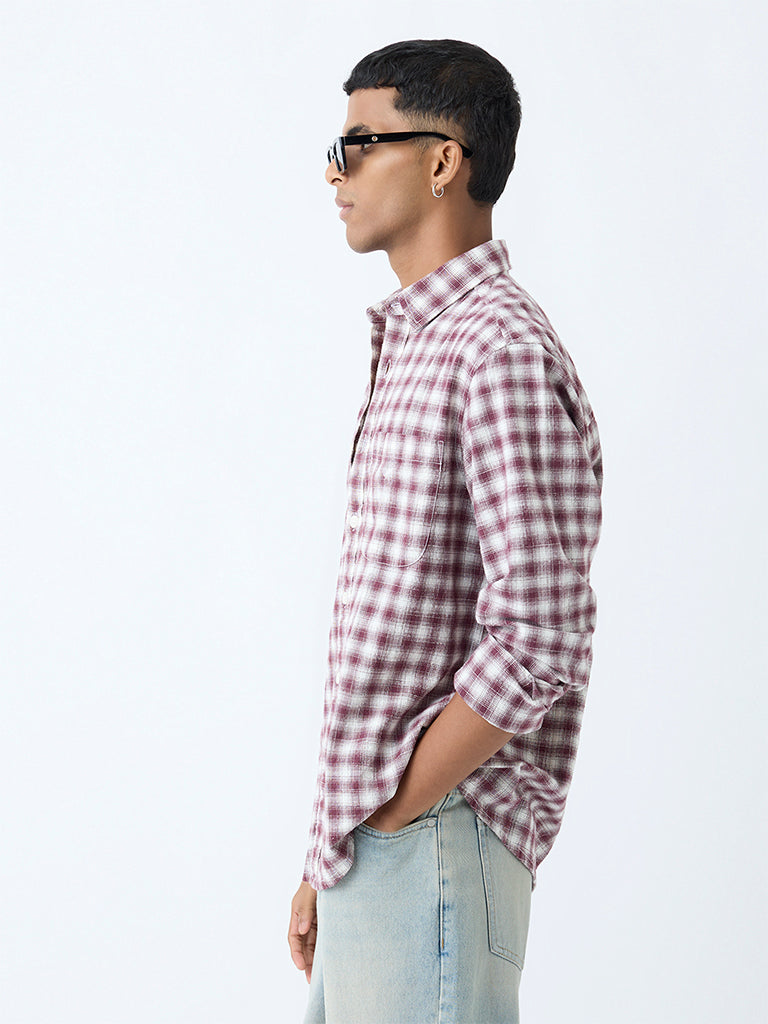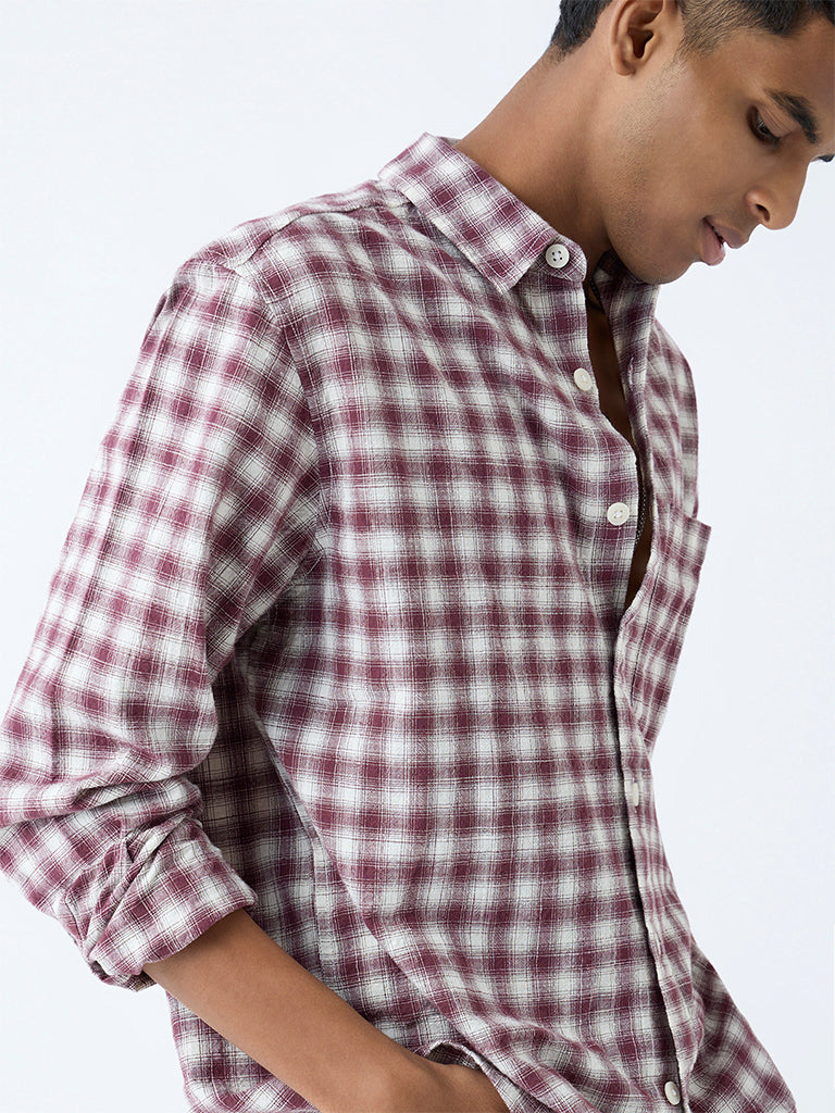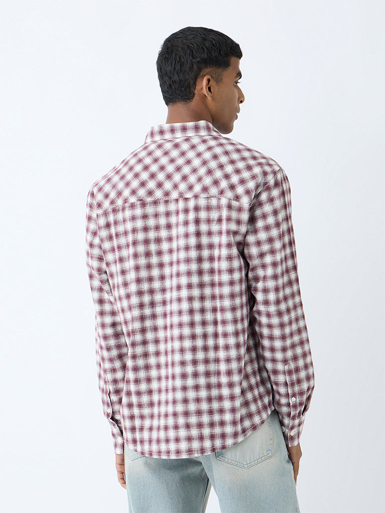 Nuon Maroon Checks Detailed Relaxed-Fit Cotton Shirt