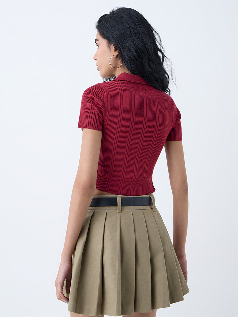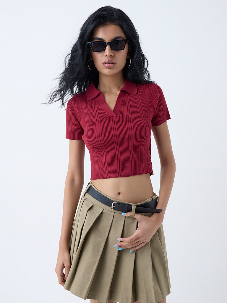 Dial up your style game with this maroon t-shirt from Nuon. Spun from a ribbed-textured fabric that feels as good as it looks. it’s complete with a flattering V-neck collar and short sleeves. The criss-cross detailing on the sides accentuate its appeal.