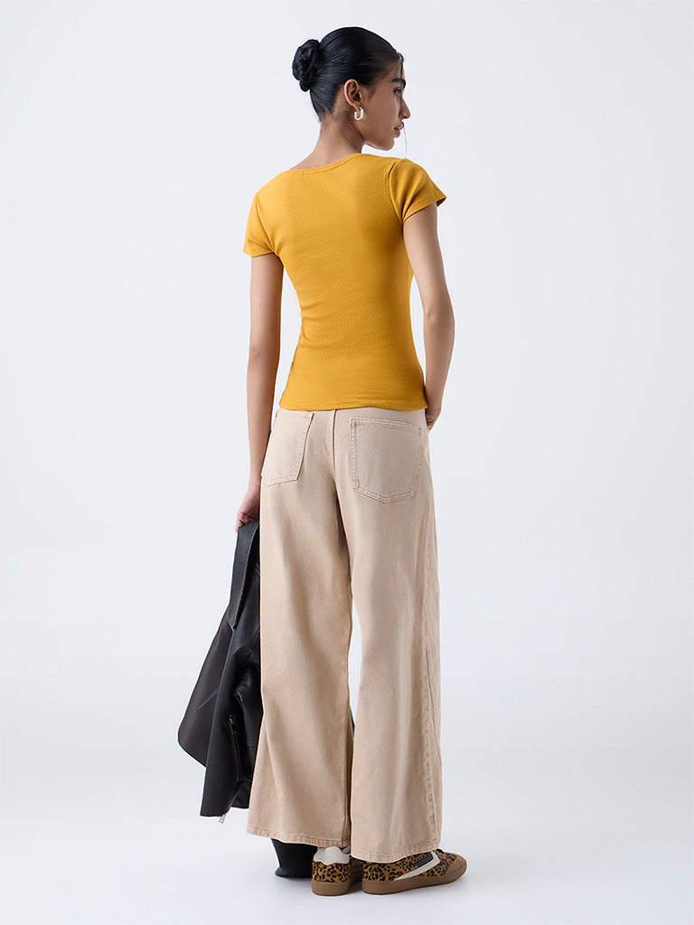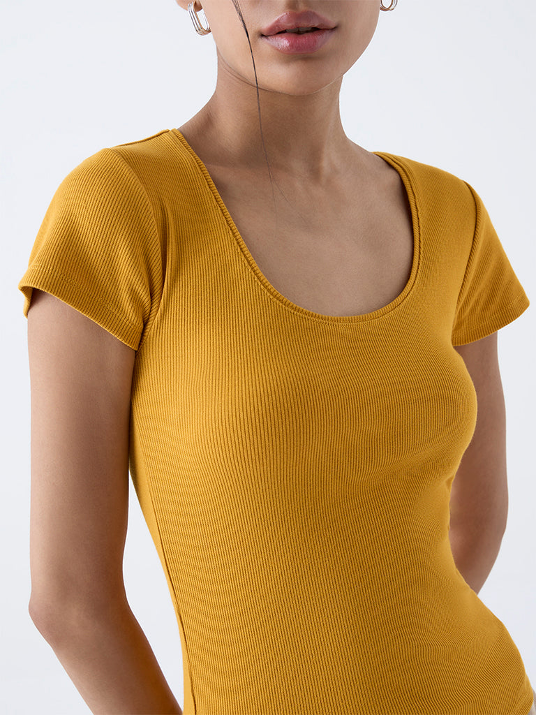 Nuon Mustard Ribbed Cotton-Blend T-Shirt