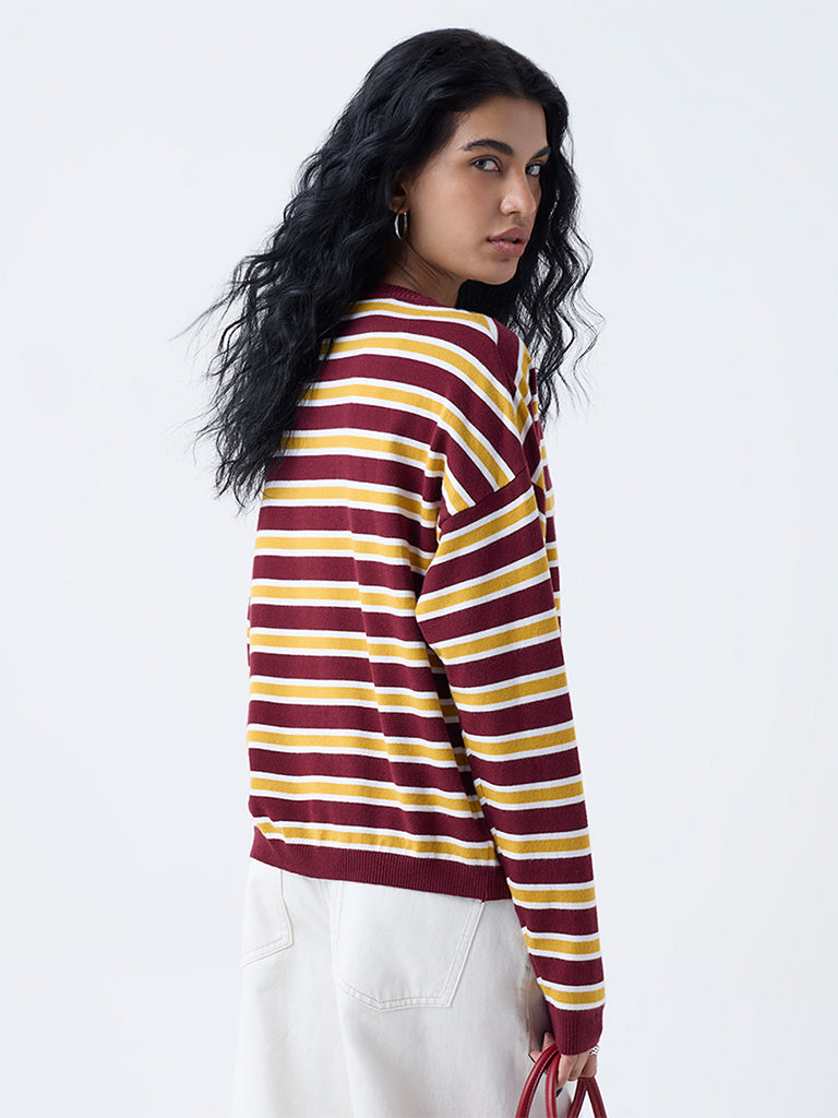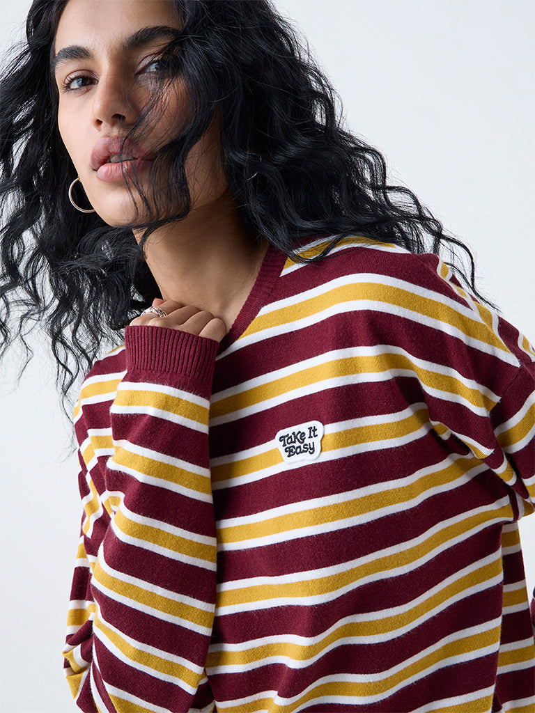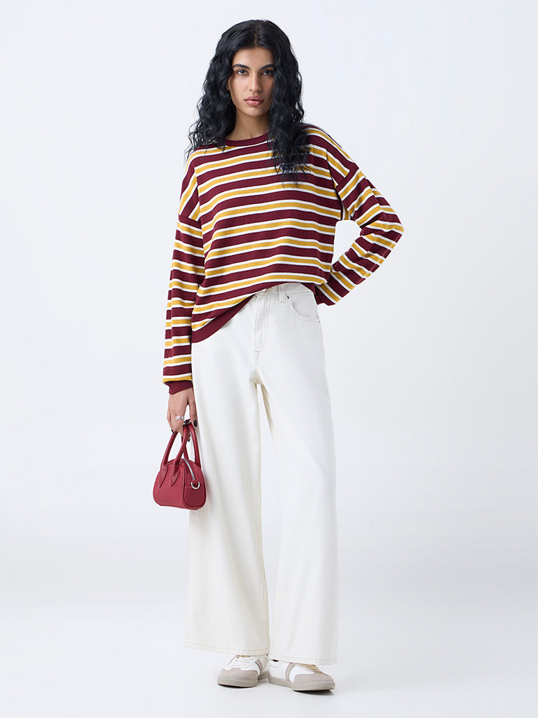 Nuon brings this vibrant sweatshirt featuring bold mustard stripes. Woven from a soft and lightweight fabric. it is styled with a round neck and full sleeves.