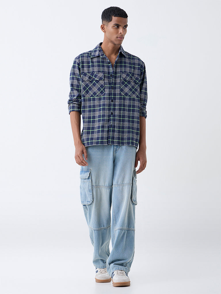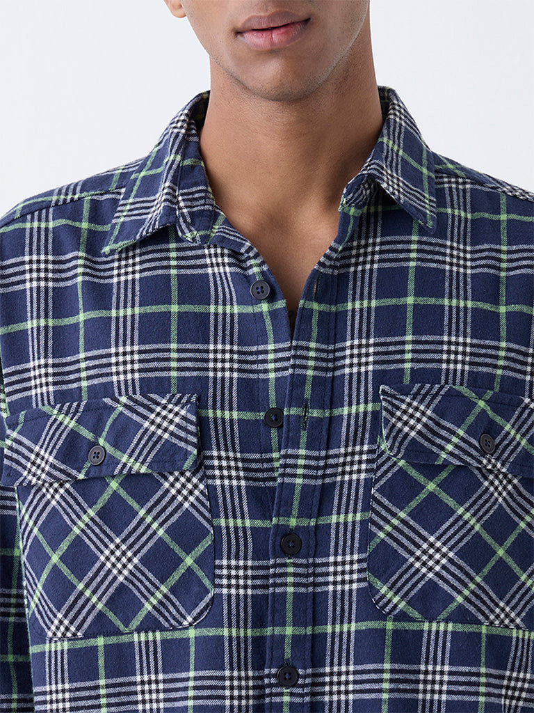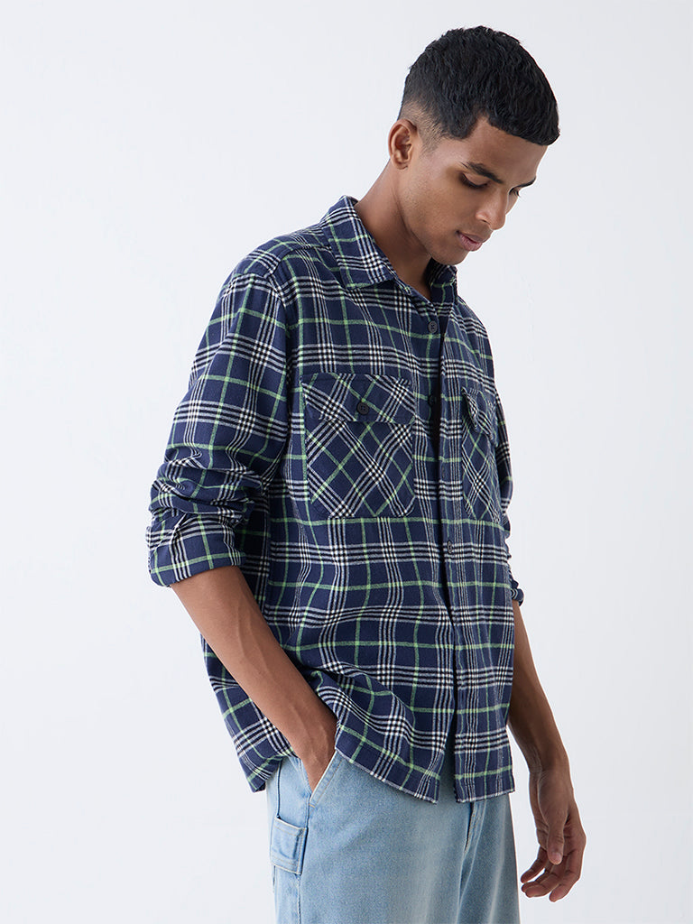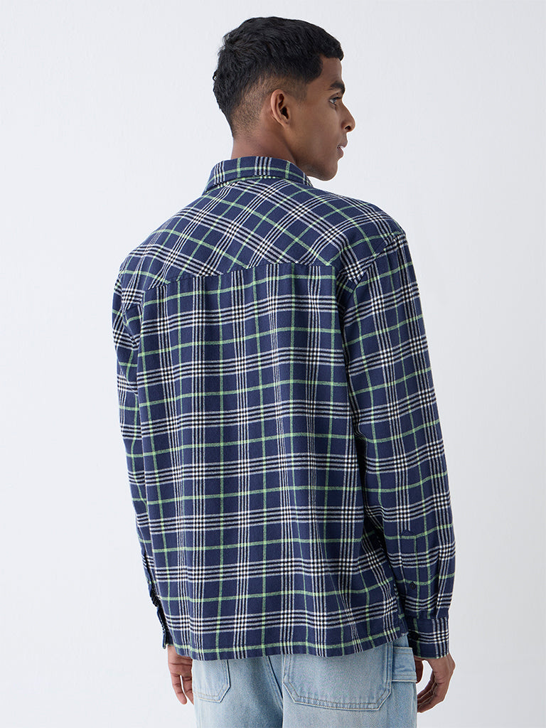 Nuon Navy Checkered Relaxed-Fit Cotton Shirt