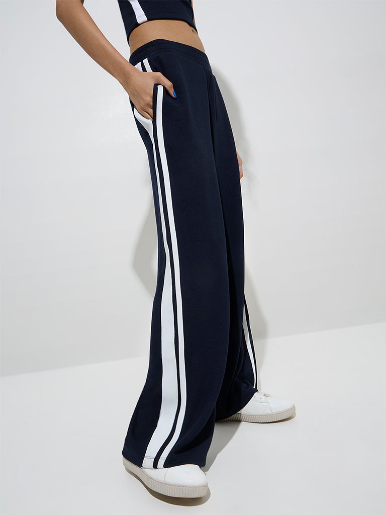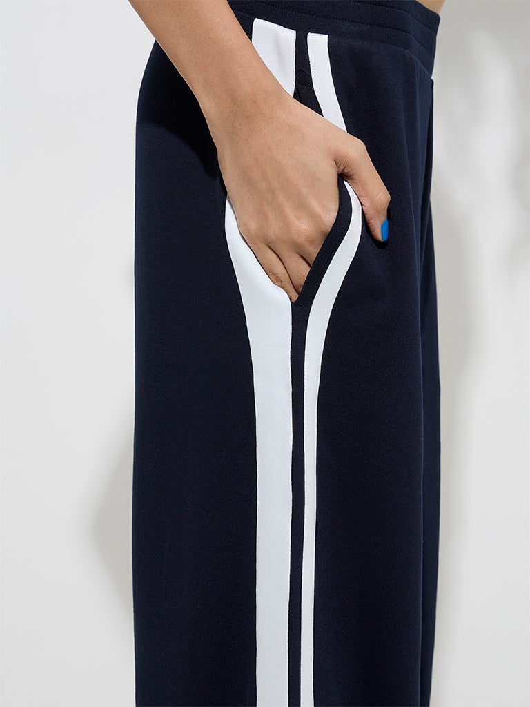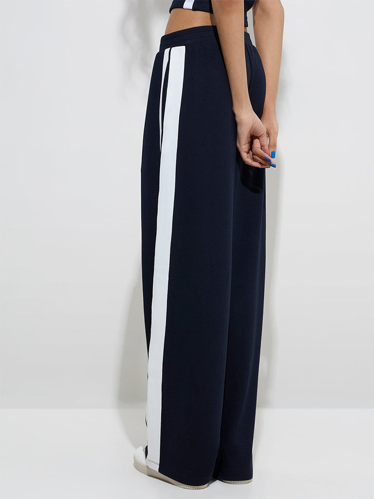 Nuon Navy Panel-Detailed High-Rise Track Pants