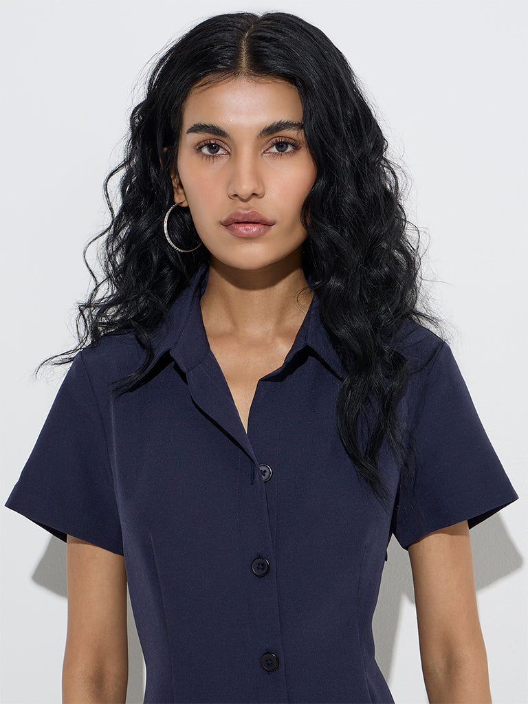 Nuon Navy Solid Drop-Waist Shirt Dress