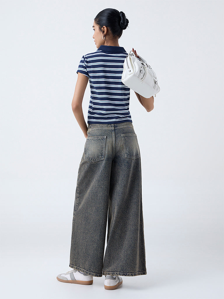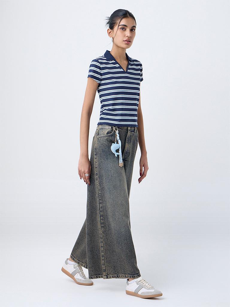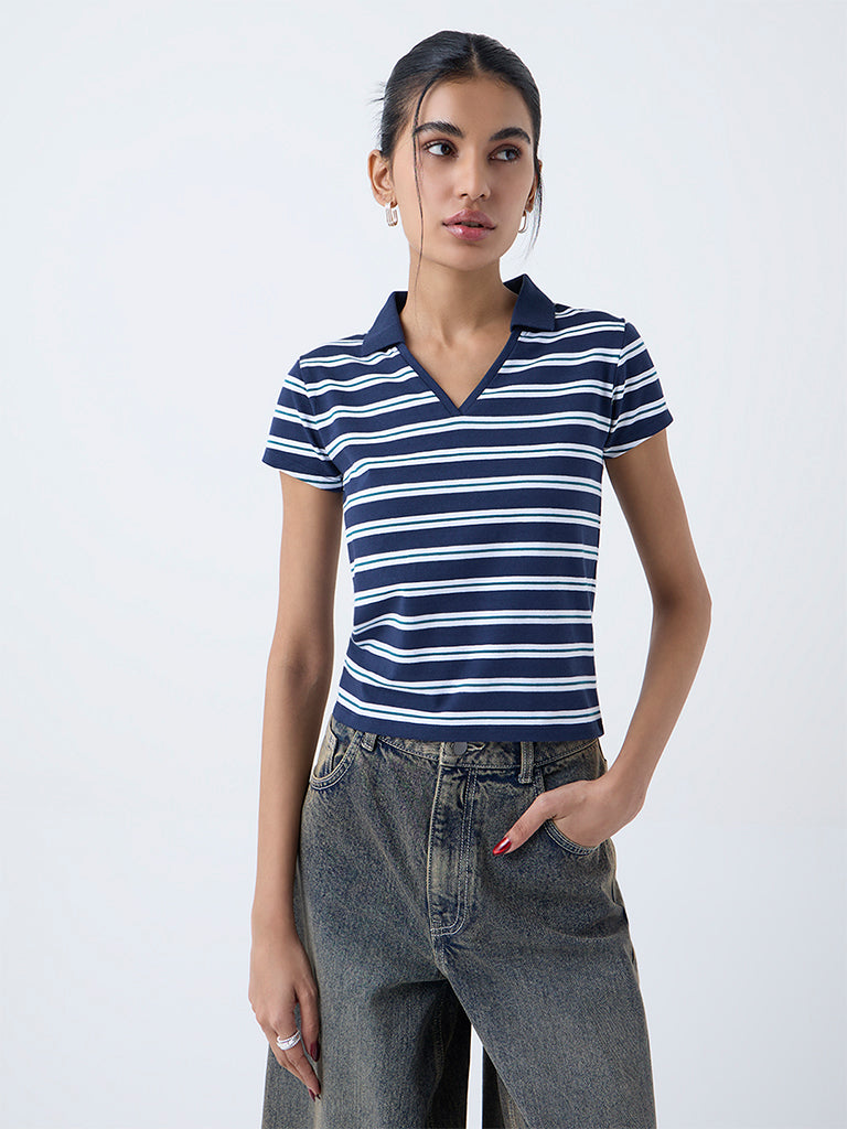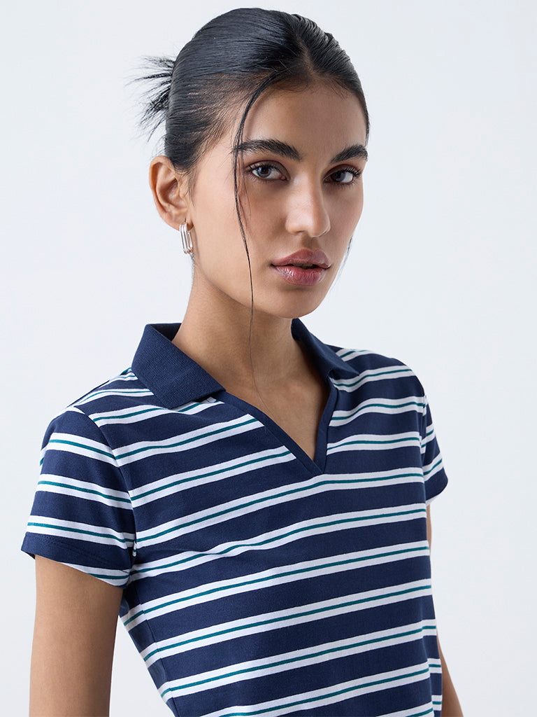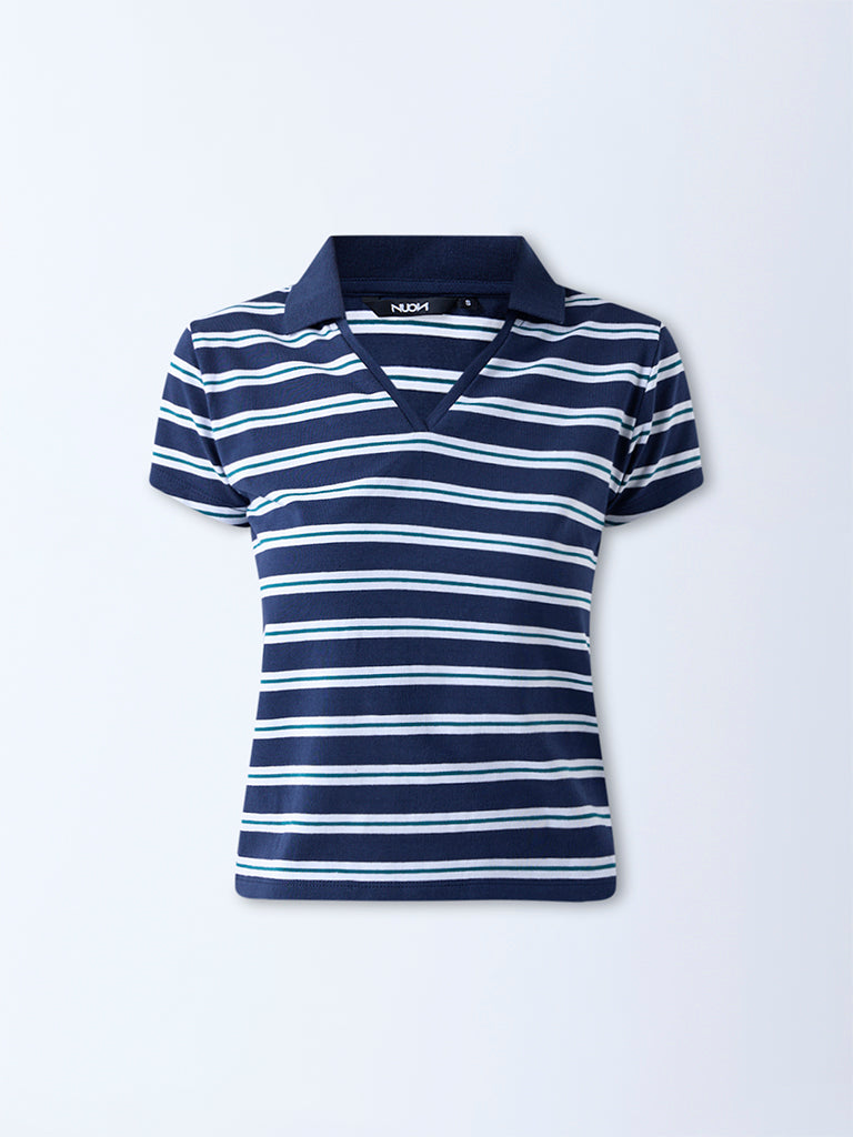 Nuon Navy Striped Cotton-Blend T-Shirt