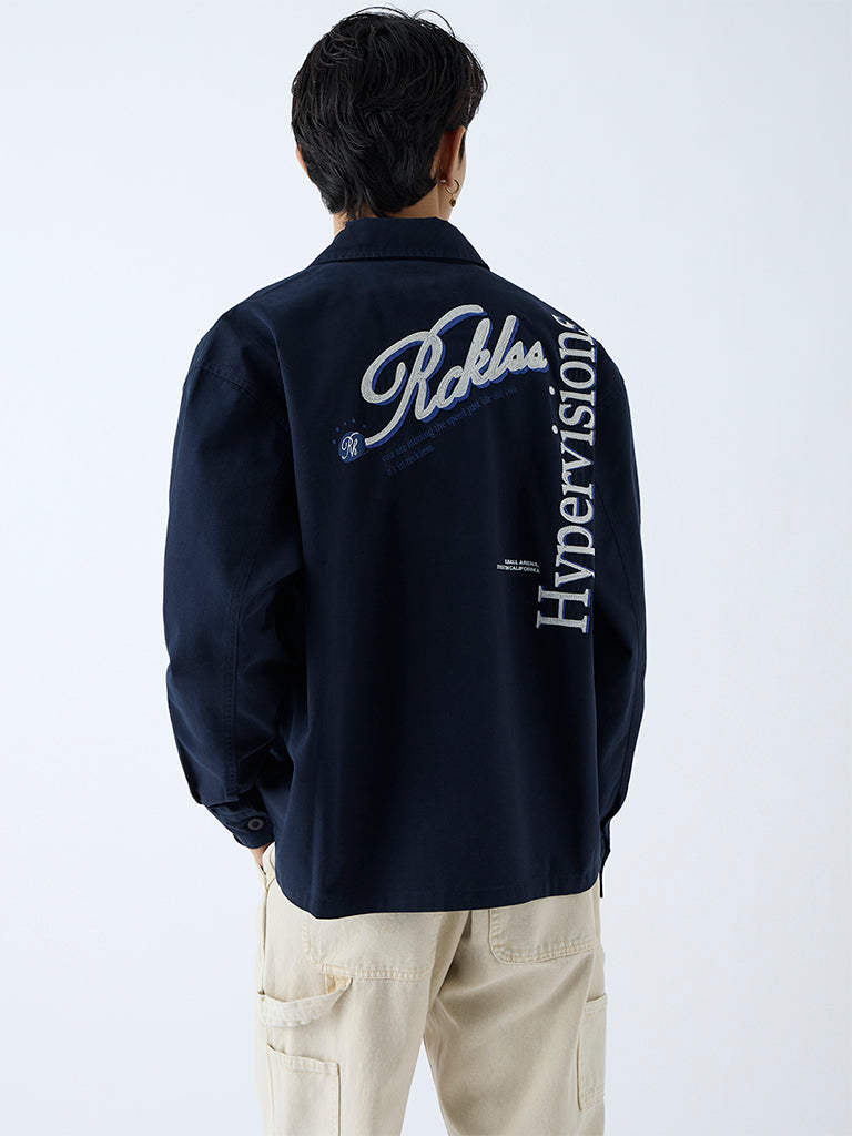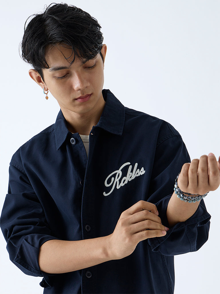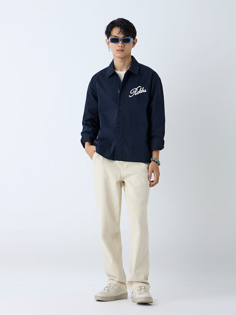 Nuon Navy Text Design Relaxed-Fit Cotton Shirt