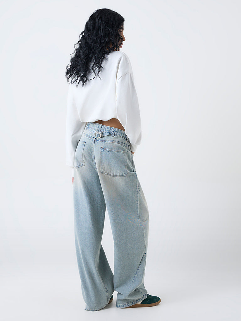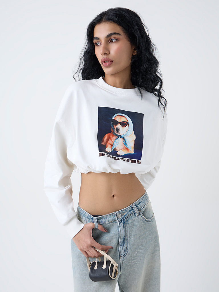 Nuon Off-White Graphic Design Crop Cotton T-Shirt