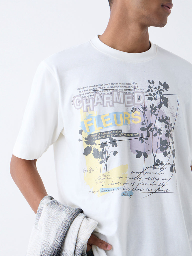 Nuon Off-White Printed Relaxed-Fit Cotton T-Shirt