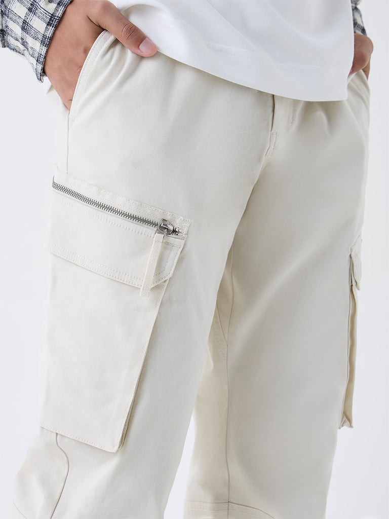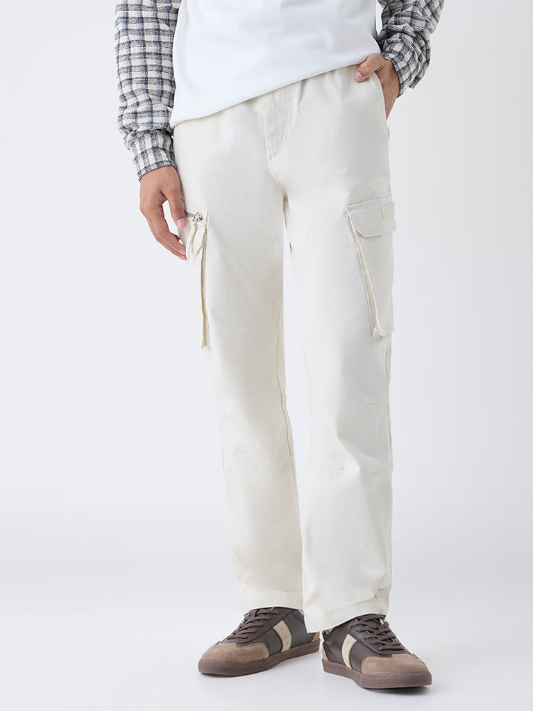 Nuon Off-White Relaxed-Fit Mid-Rise Cotton-Blend Cargo Pants