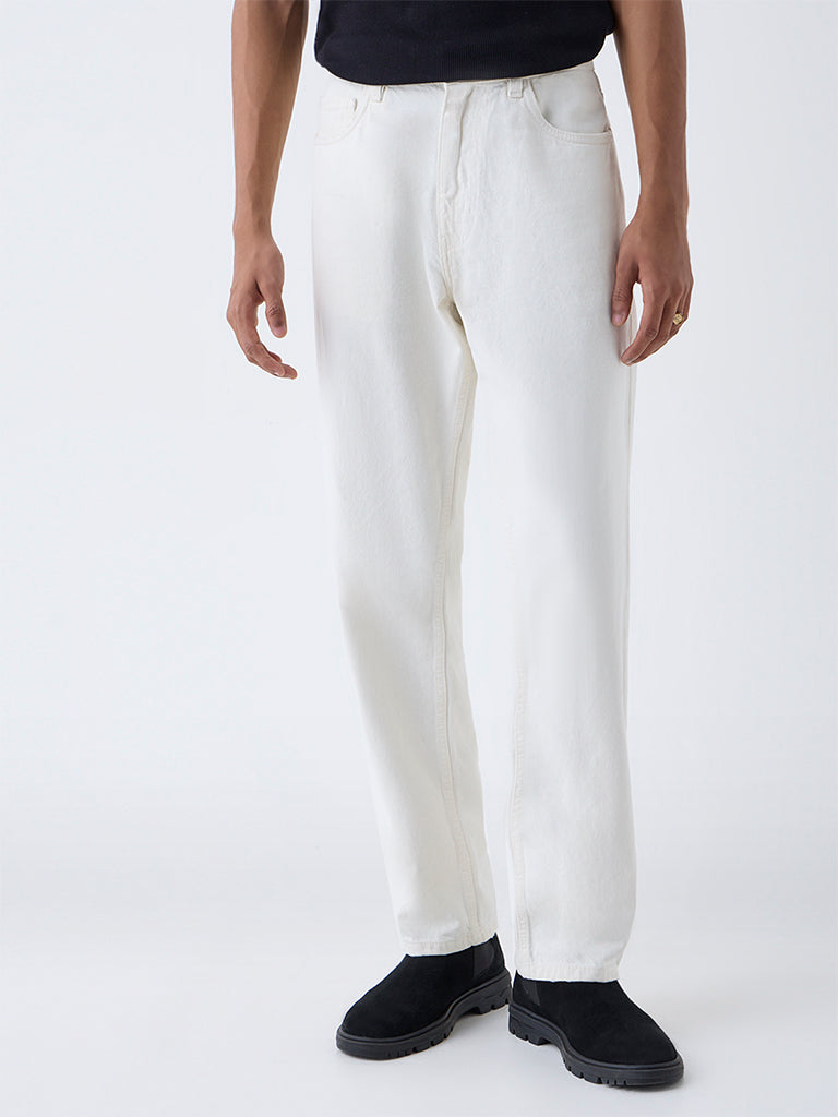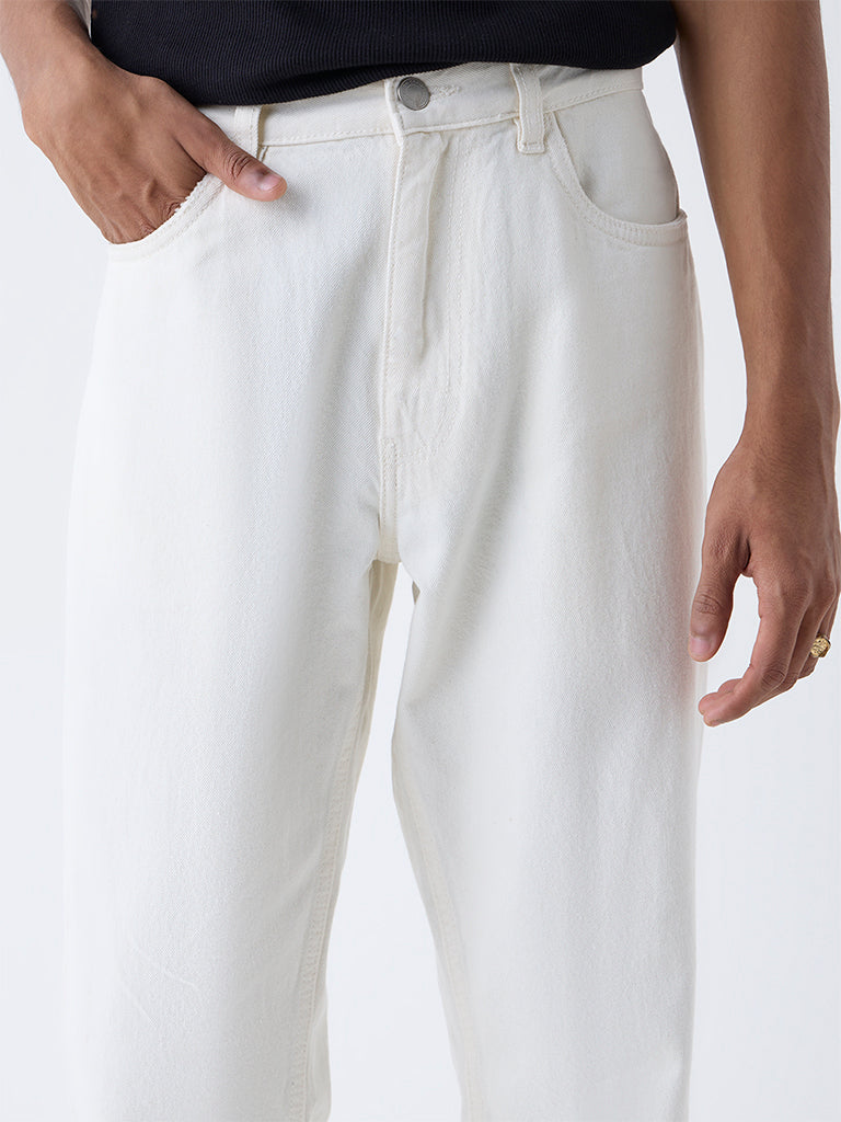 Nuon Off-White Relaxed-Fit Mid-Rise Jeans