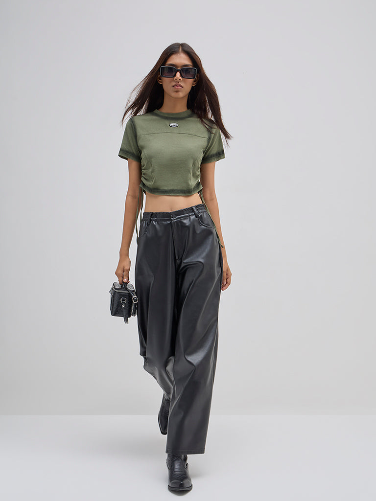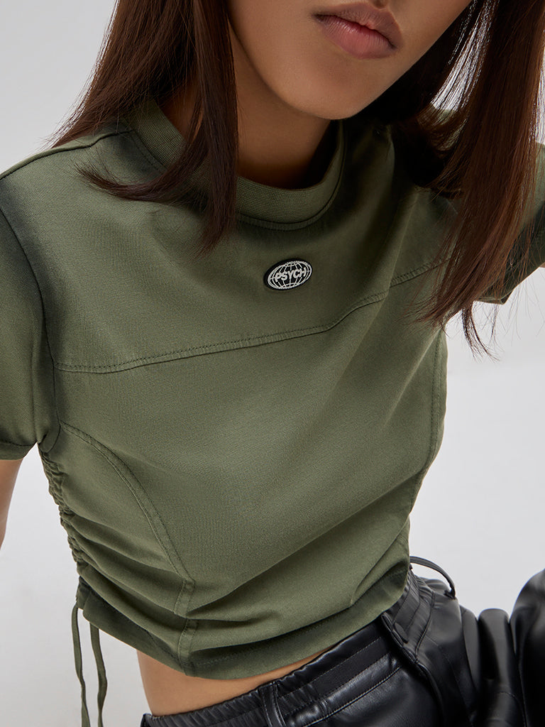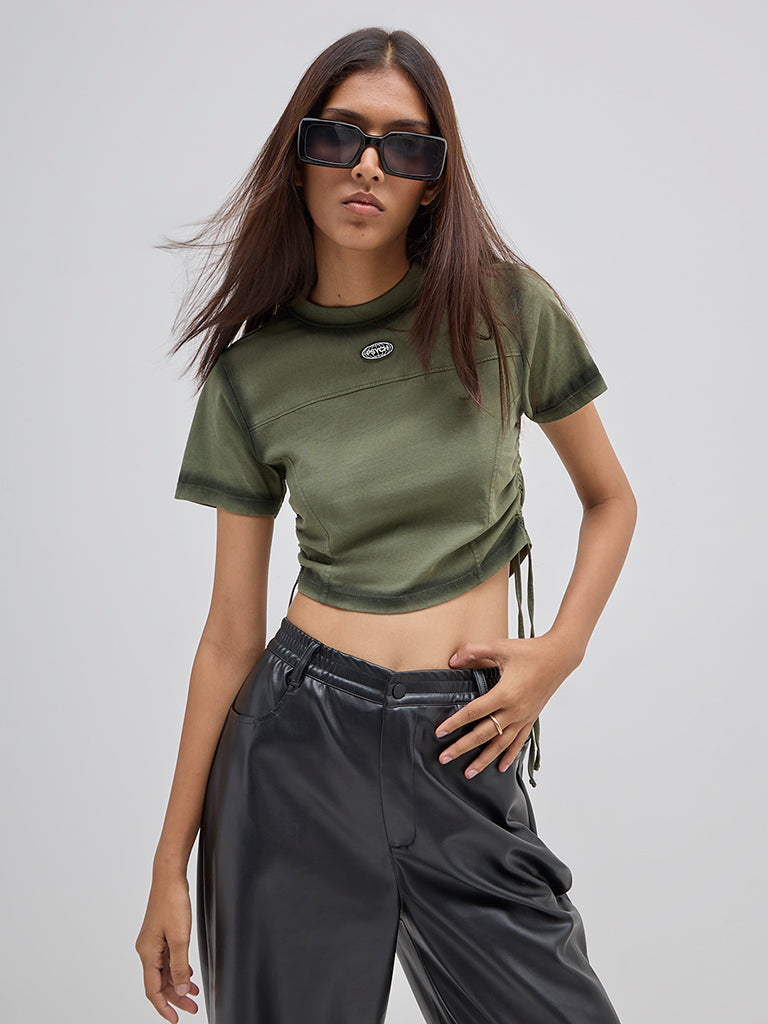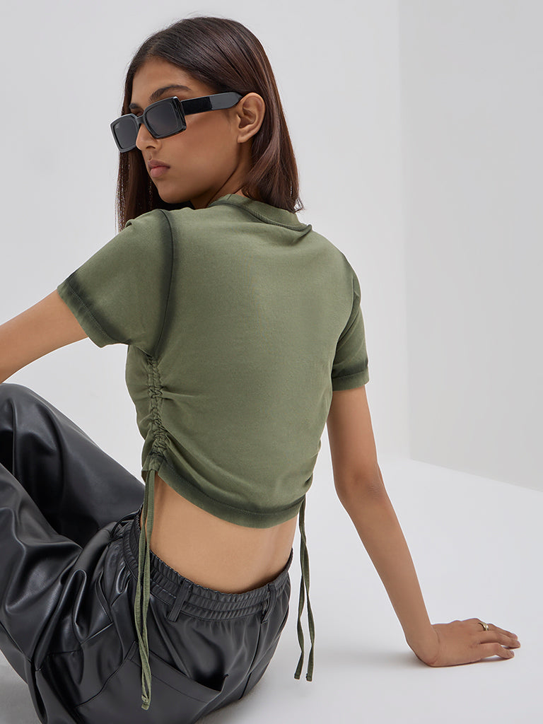 Nuon Olive Ruched Cotton T-Shirt